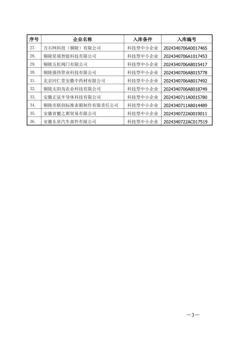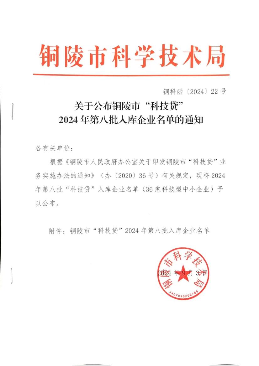 关于公布铜陵市“科技贷”2024年第八批入库企业名单的通知