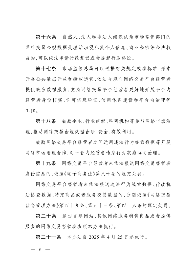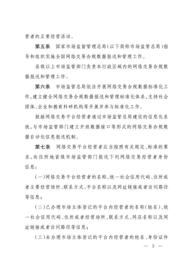 市场监管总局关于印发《网络交易合规数据报送管理暂行办法》的通知