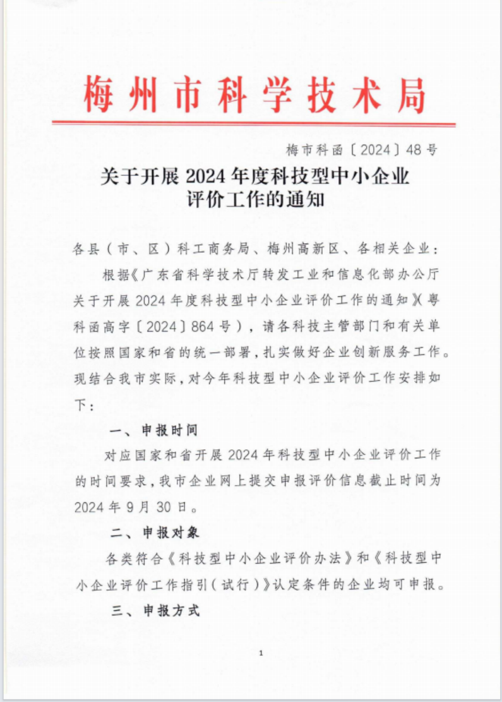 梅州市关于开展2024年度科技型中小企业评价工作的通知
