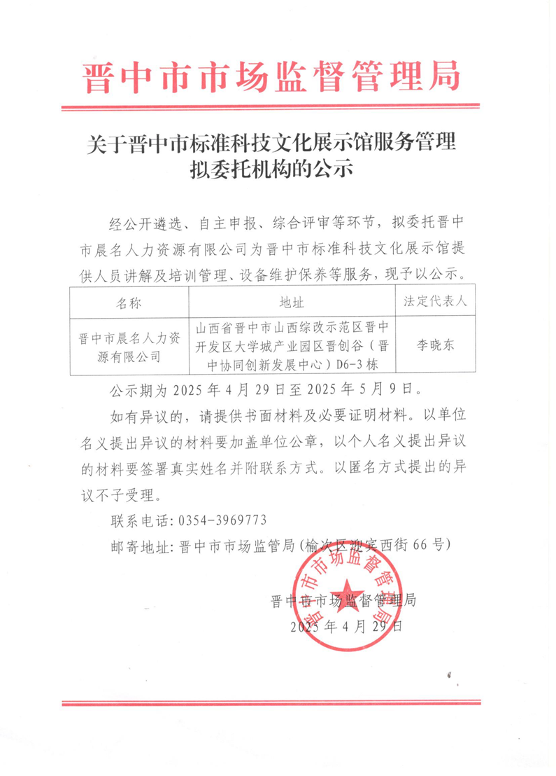 关于晋中市标准科技文化展示馆服务管理拟委托机构的公示
