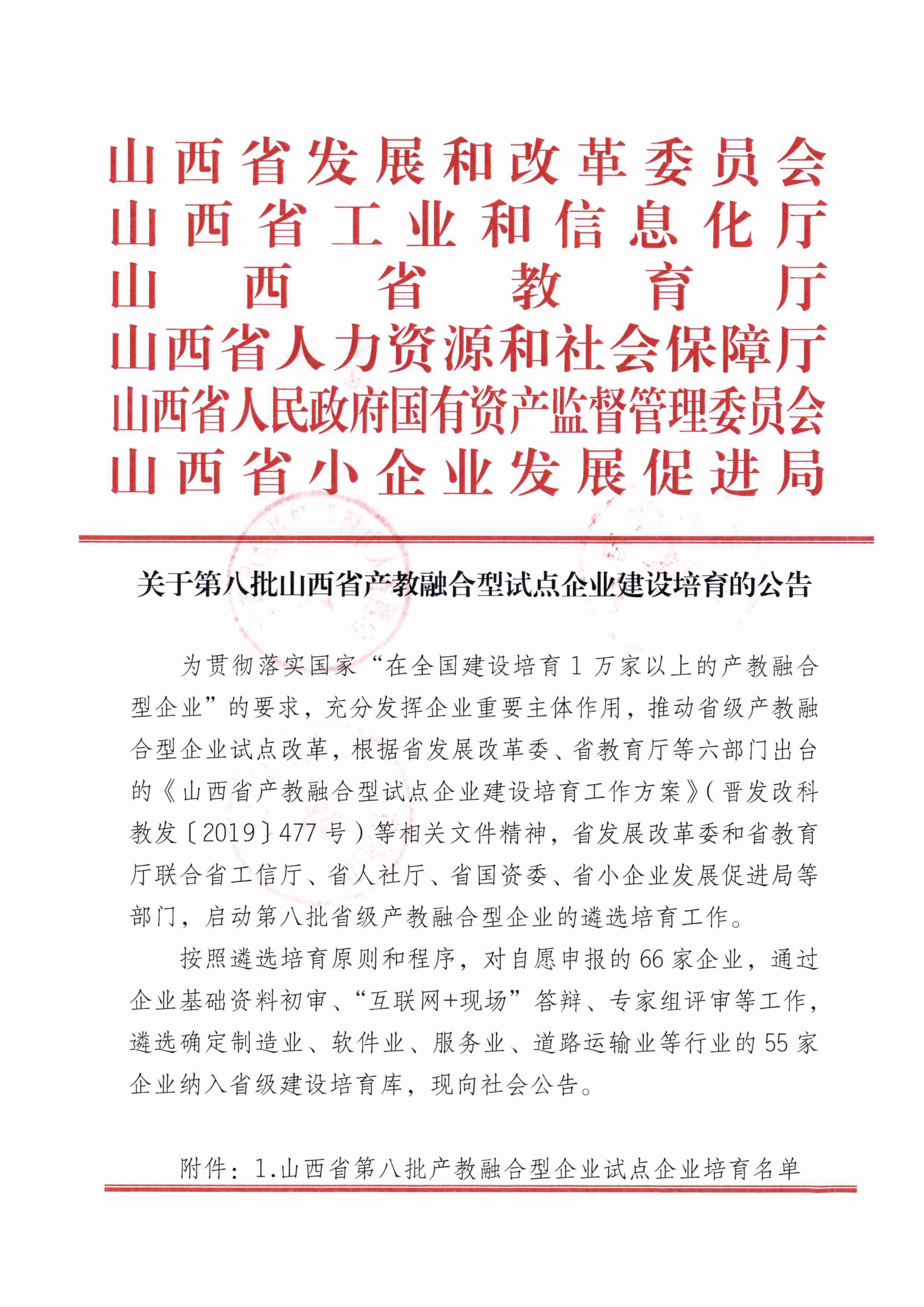 关于第八批山西省产教融合型试点企业建设培育的公告.pdf
