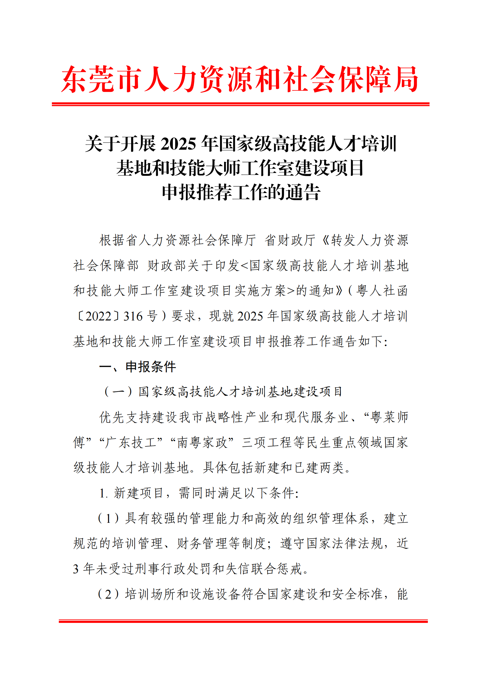 关于开展2025年国家级高技能人才培训基地和技能大师工作室建设项目申报推荐工作的通告