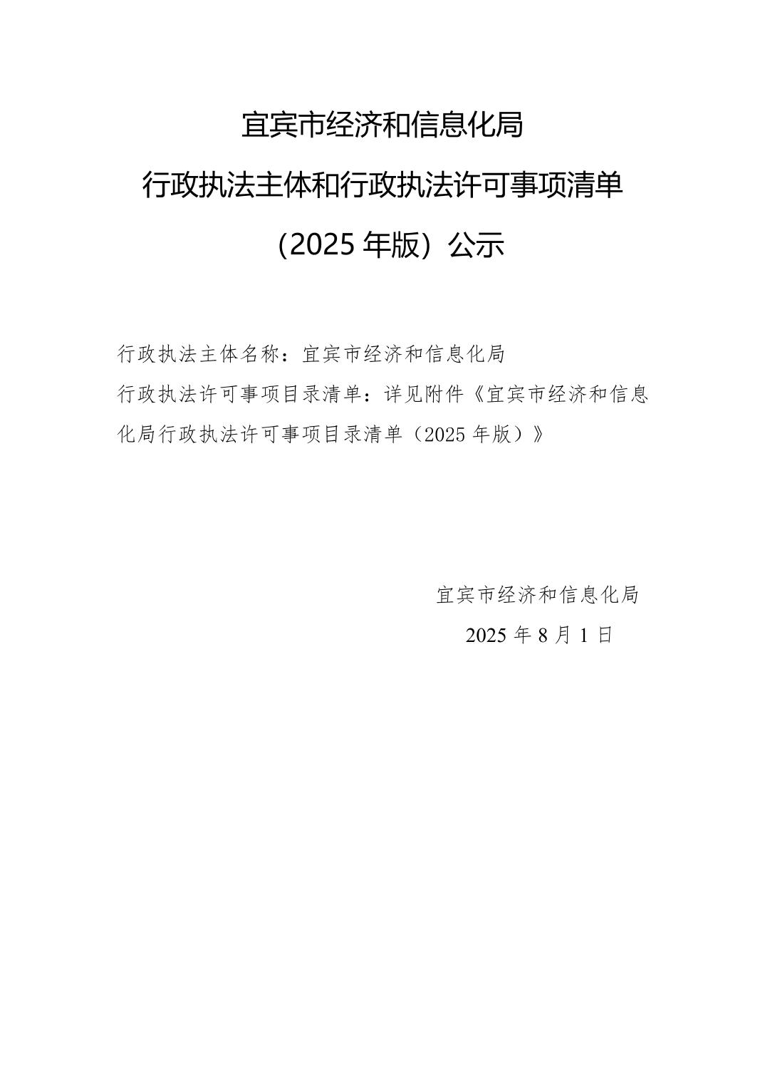 宜宾市经济和信息化局行政执法主体和行政执法许可事项清单(2025年版)公示