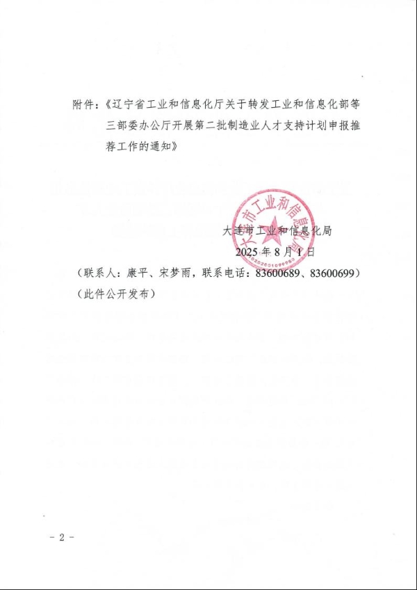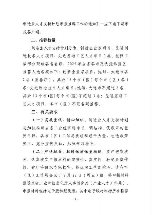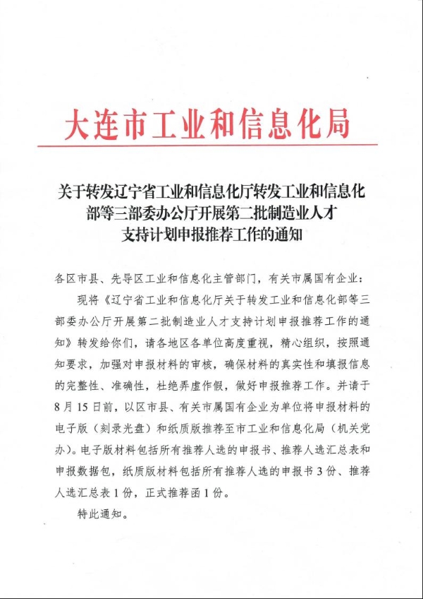 关于转发辽宁省工业和信息化厅转发工业和信息化部等三部委办公厅开展第二批制造业人才支持计划申报推荐工作的通知