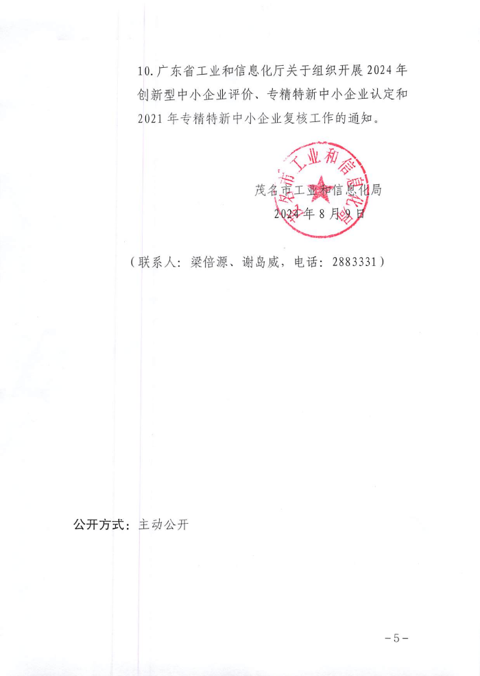 10.广东省工业和信息化厅关于组织开展2024年创新型中小企业评价、专精特新中小企业认定和2021年专精特新中小企业复核工作的通知.pdf(点击下载) |