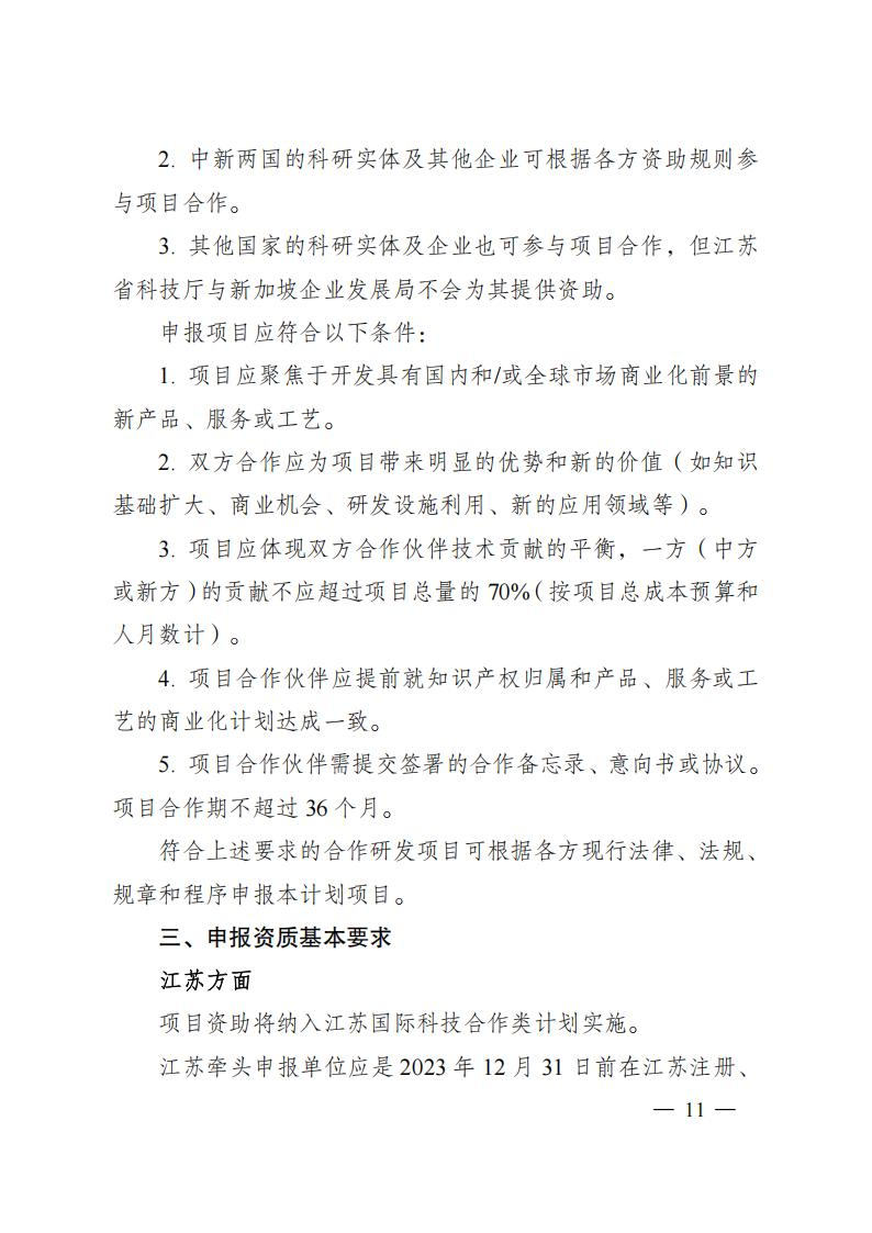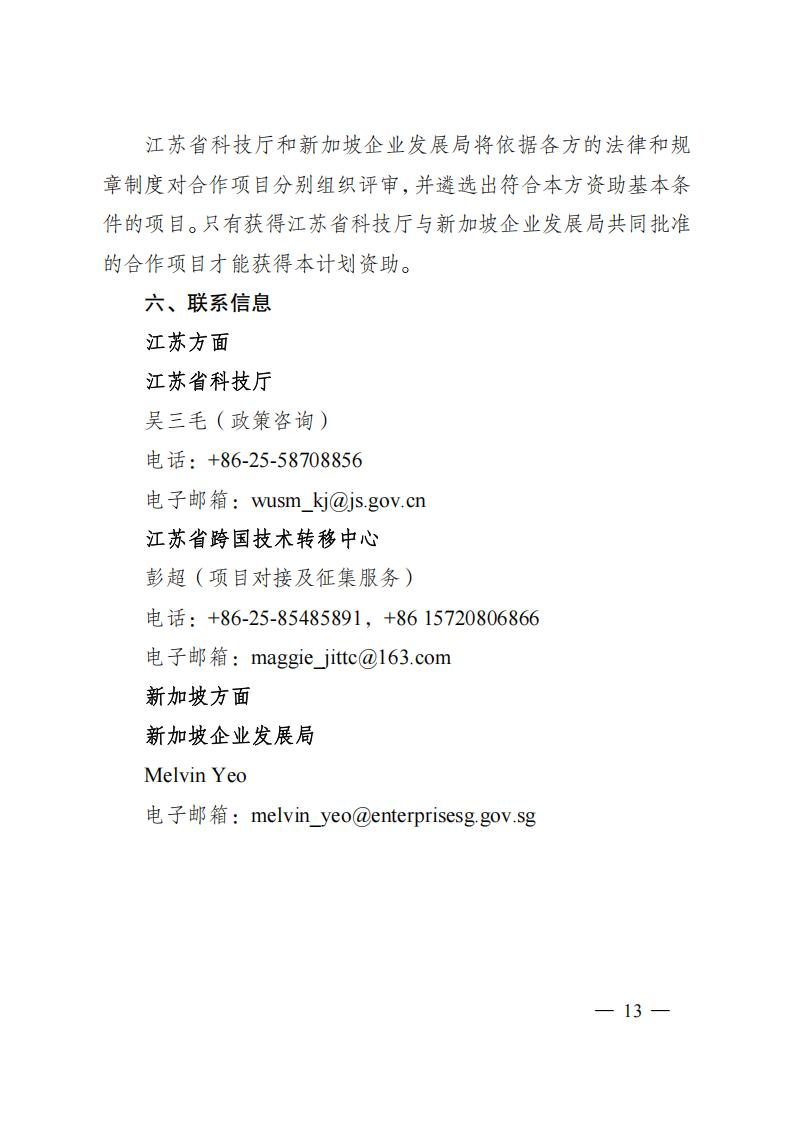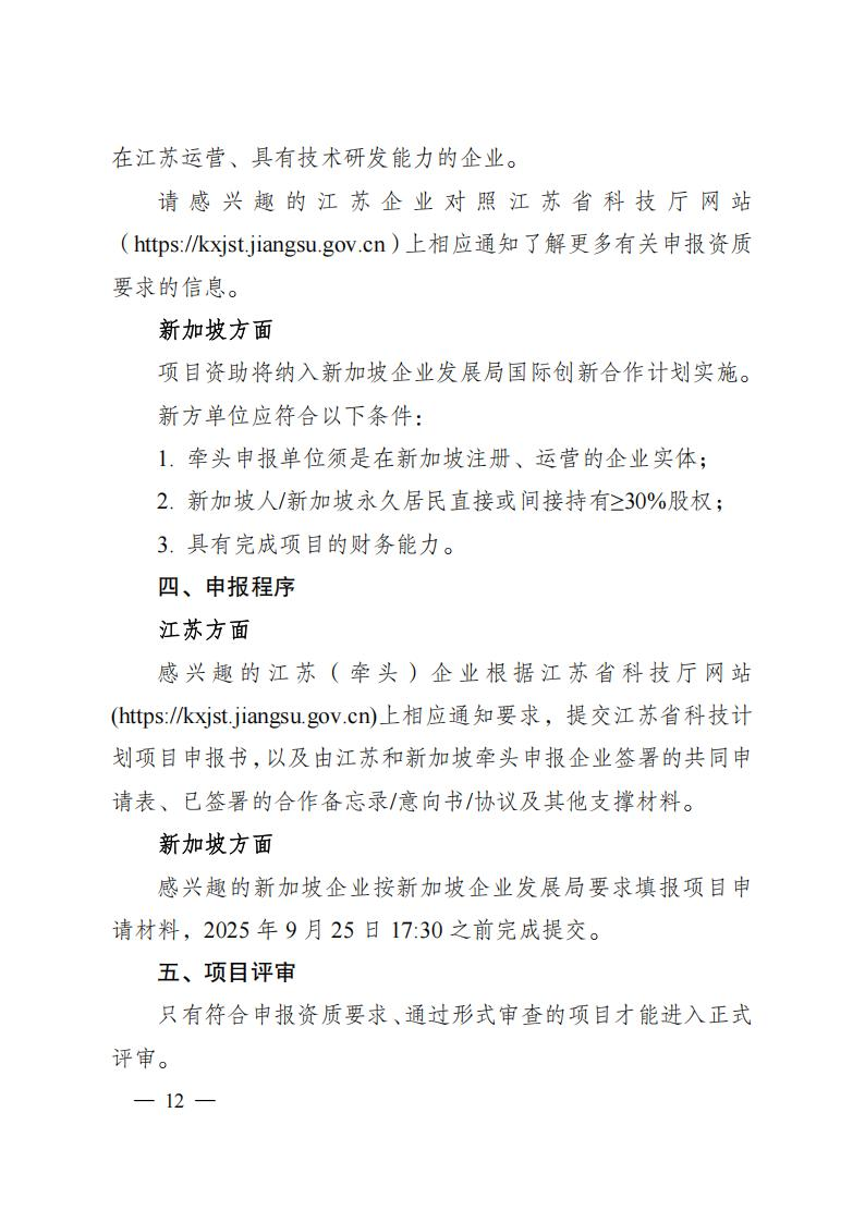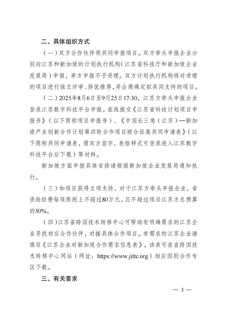 技厅关于开展中国长三角(江苏)—新加坡产业创新合作计划第四轮合作项目 联合征集的通知