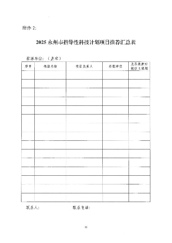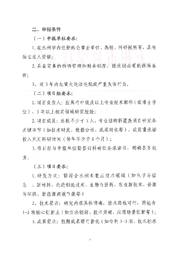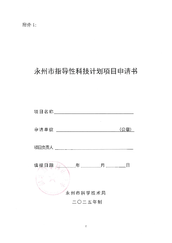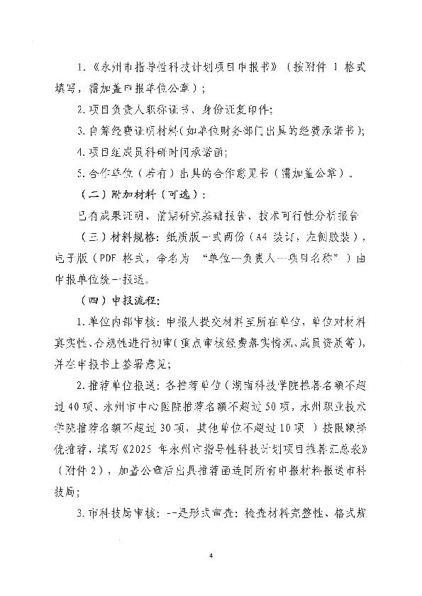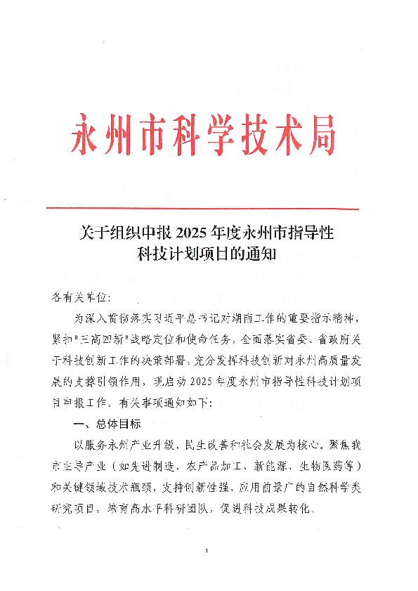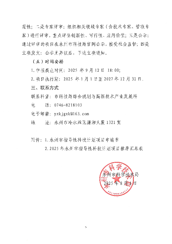 关于组织申报2025年度永州市指导性科技计划项目的通知