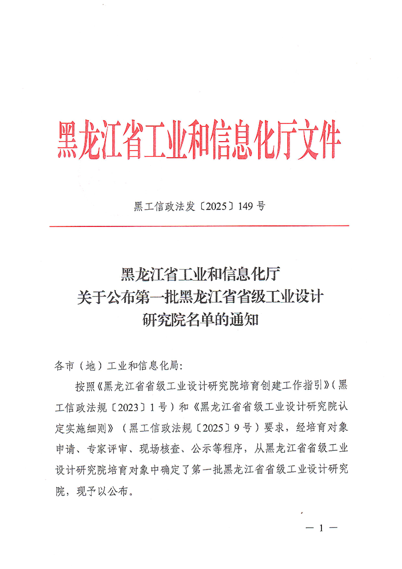 关于公布第一批黑龙江省省级工业设计研究院名单的通知