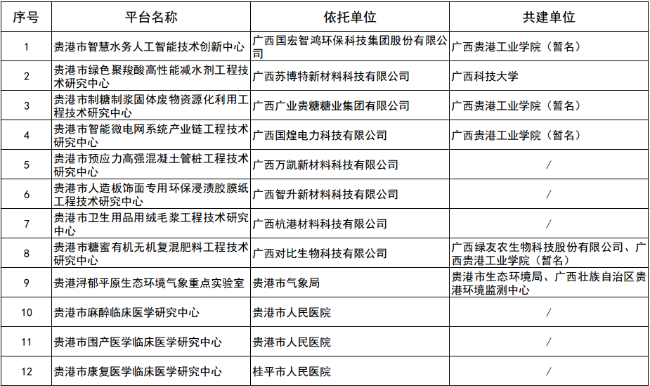 根据《贵港市科技创新平台建设管理暂行办法》(贵政办发〔2019〕32号),经企事业单位申报和相关程序,现公布2025年市级科技创新平台名单(名单见附件)。