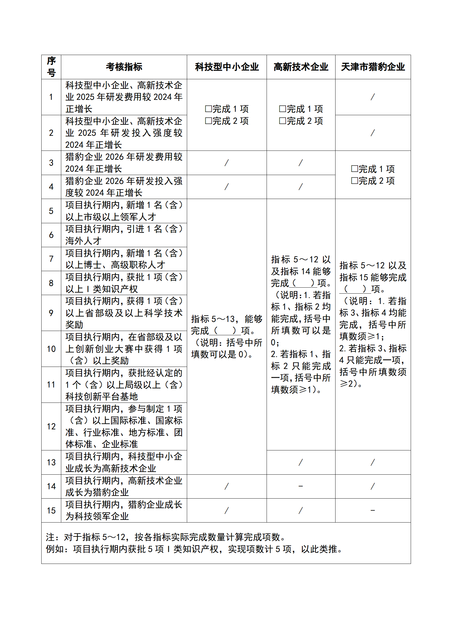 6.申报单位视情填写企业研发能力考核指标表中预期能取得的成果。此表请企业慎重填写,企业所填写的预期成果经专家评审通过后,将成为合同考核内容。