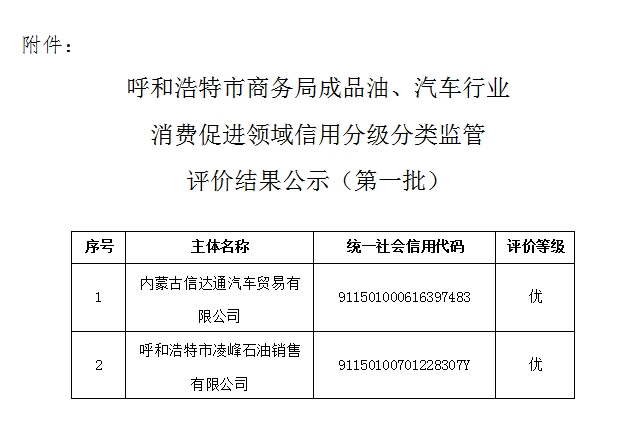 按照《内蒙古自治区发展和改革委员会关于推送公共信用综合评价结果的函》要求,以公共信用综合评价支撑分级分类监管,国家公共信用信息中心对我市14万余家参评市场主体开展公共信用综合评价。信用评价等级分为九级:优、优-、良、良+、良-、中、中+、中-、差。