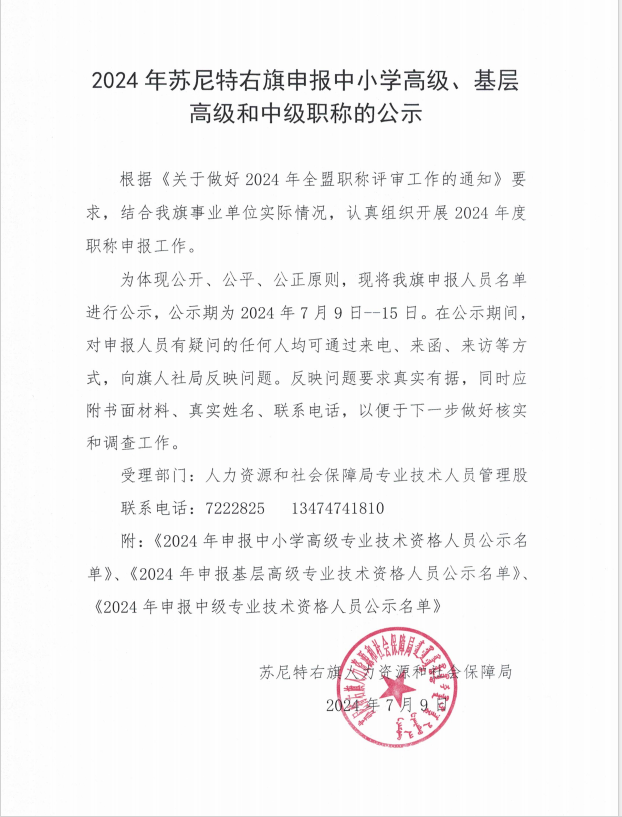 附件:2024年苏尼特右旗申报中小学高级、基层高级和中级职称的公示名单