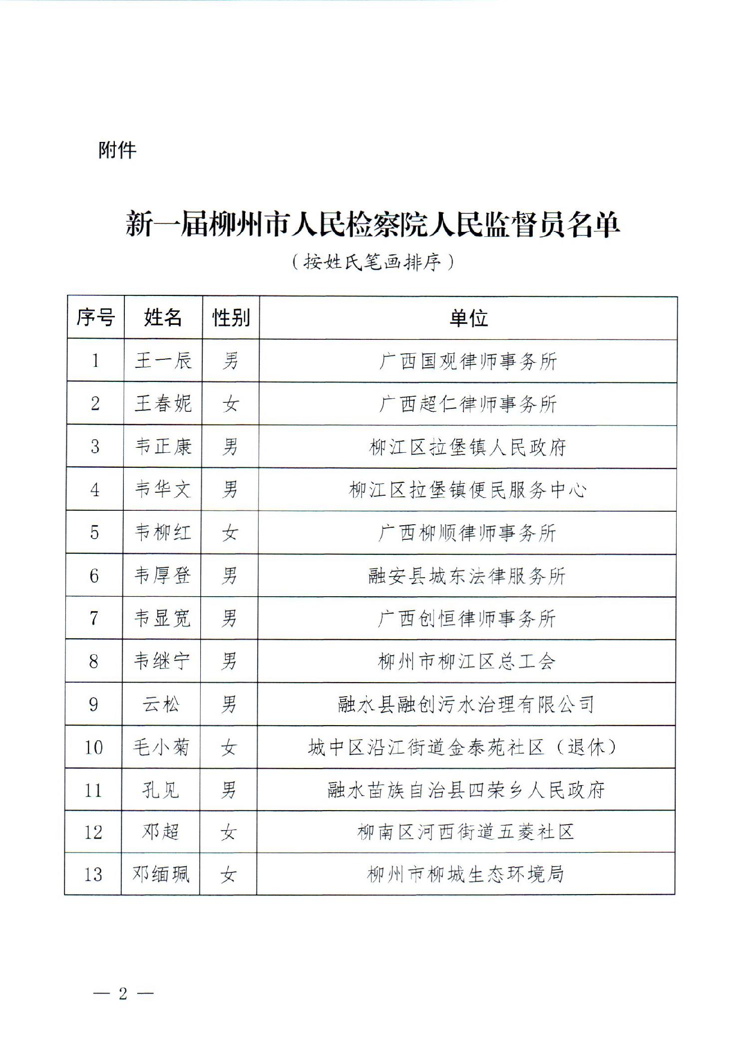 柳州市司法局关于选任新一届柳州市人民检察院人民监督员的决定