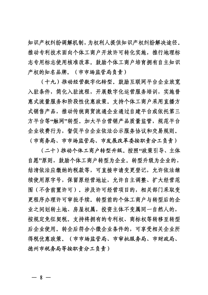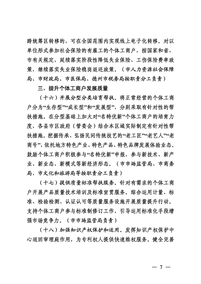 市委办公室市政府办公室关于印发《德州市促进个体工商户发展若干措施》的通知