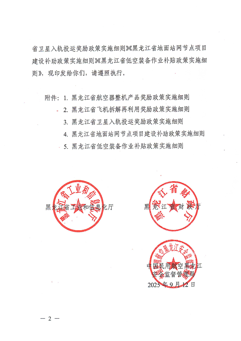 关于印发黑龙江省航空器整机产品奖励政策实施细则等5个实施细则的通知