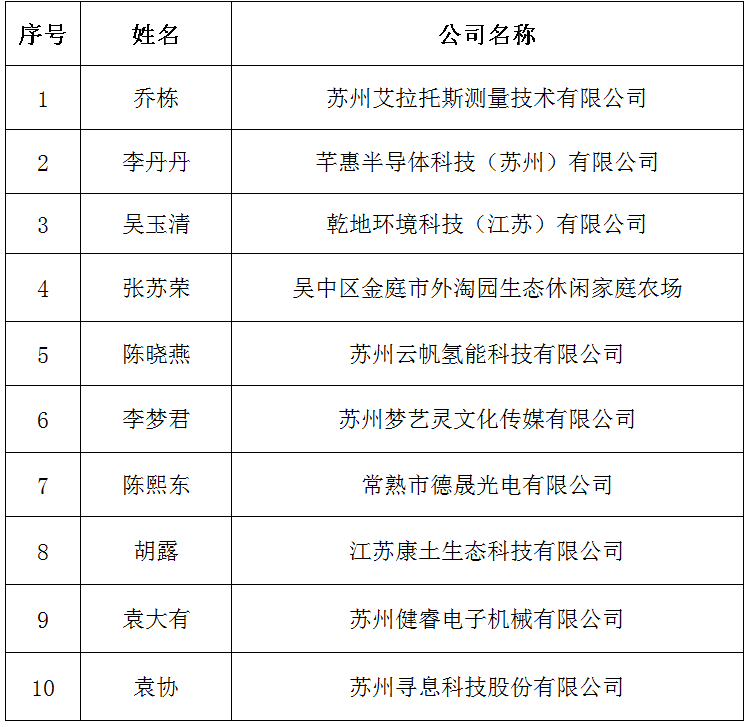 根据《关于举办2025年度苏州市大学生创业创新大赛标兵赛的通知》(苏就〔2025〕18号)文件精神,经过各地推荐、资格审查、项目评审等环节,最终确定“乔栋”等10名同志入选2025年度苏州市大学生创业创新大赛标兵赛路演。现将名单予以公示,公示时间从2025年9月30日起至2025年10月2日止。公示期间如有异议,请与苏州市劳动就业管理服务中心(苏州市创业指导中心)联系。