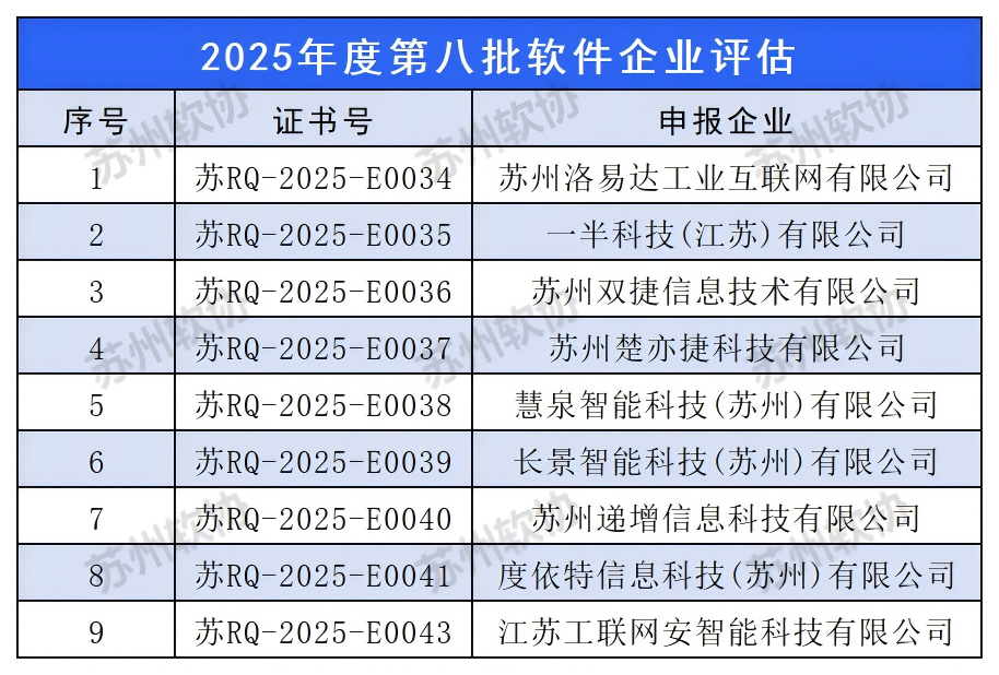 苏州市2025年度第八批软件企业评估公示名单