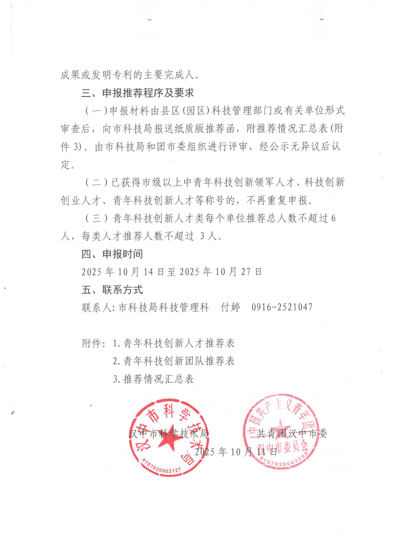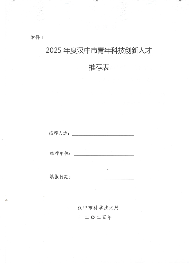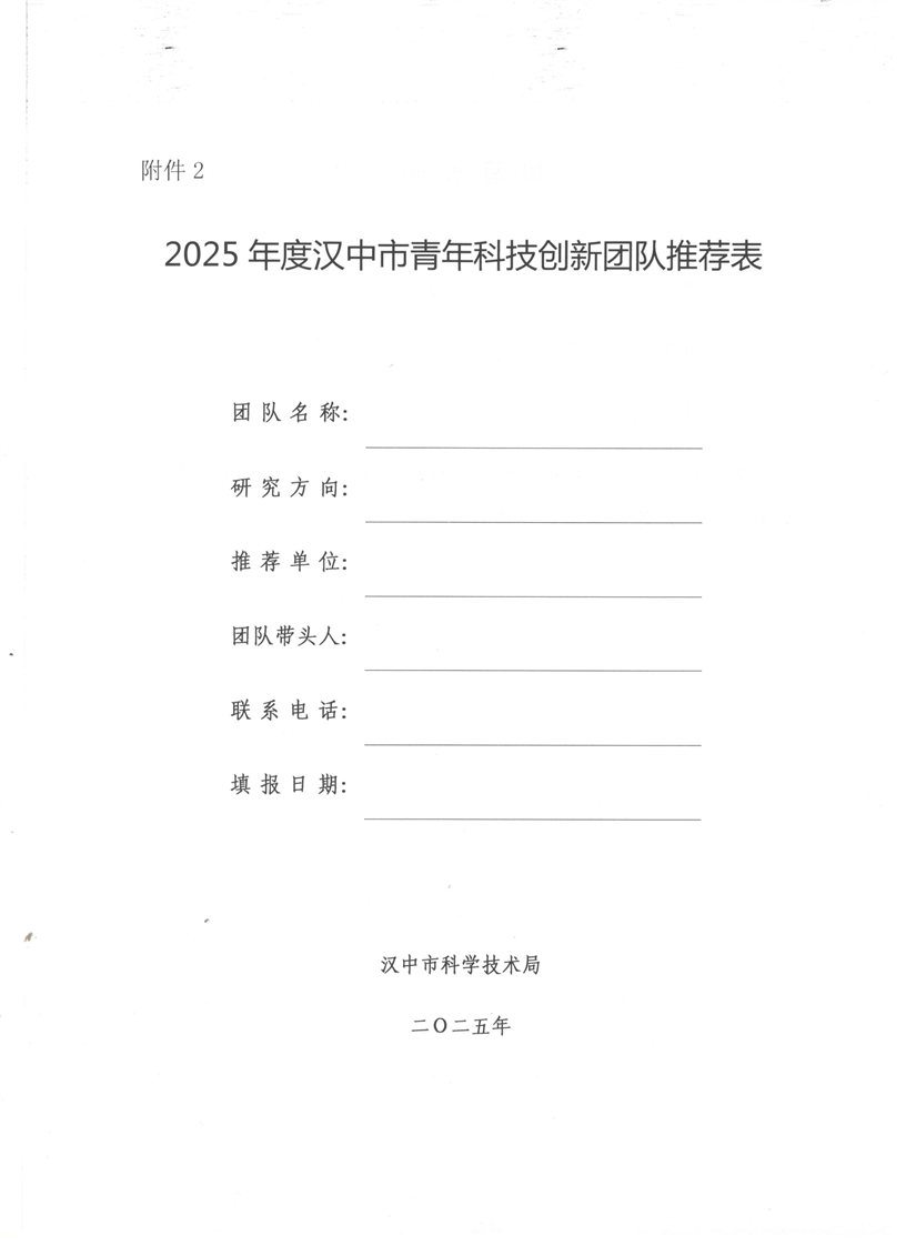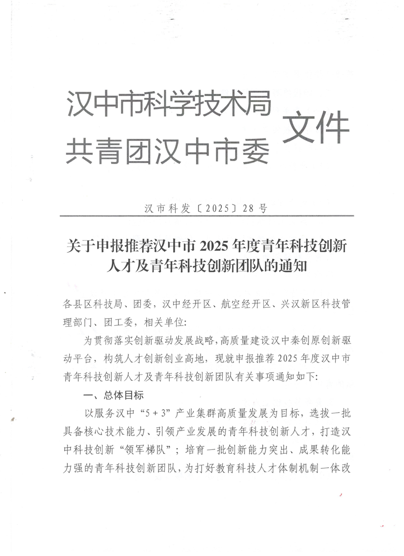 关于申报推荐汉中市2025年度青年科技创新人才及青年科技创新团队的通知