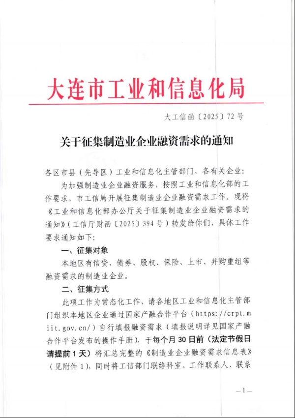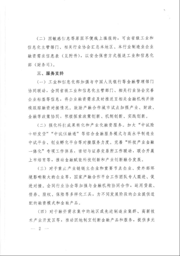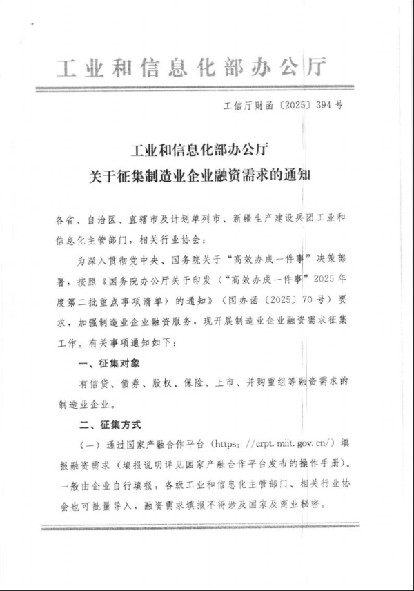关于征集制造业企业融资需求的通知