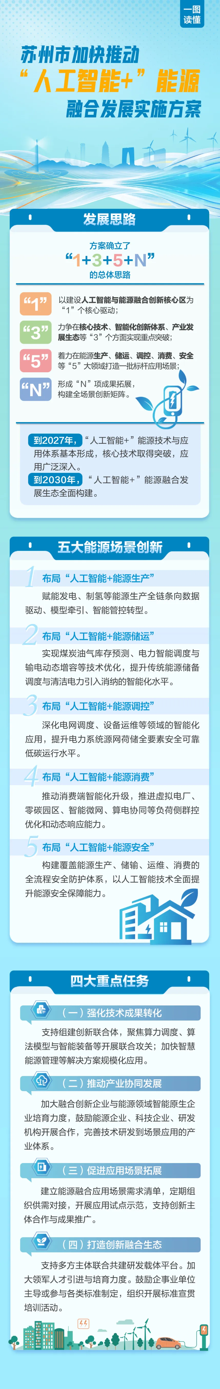 一图读懂《苏州市加快推动“人工智能+”能源融合发展实施方案》