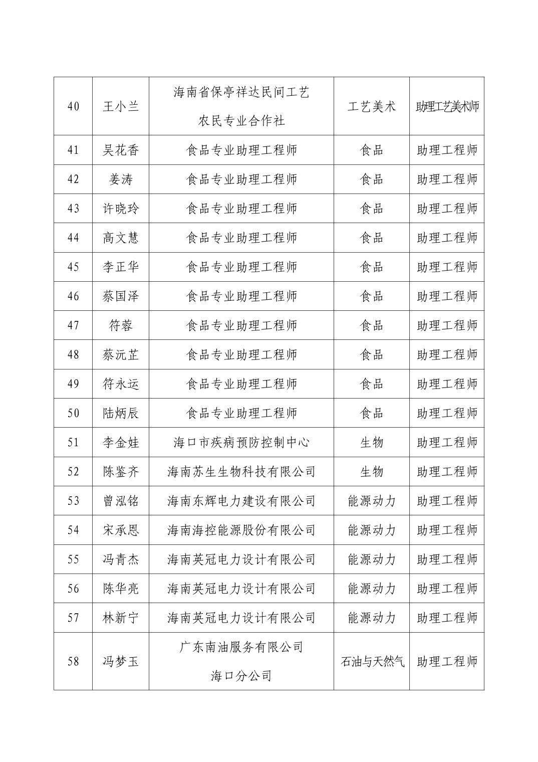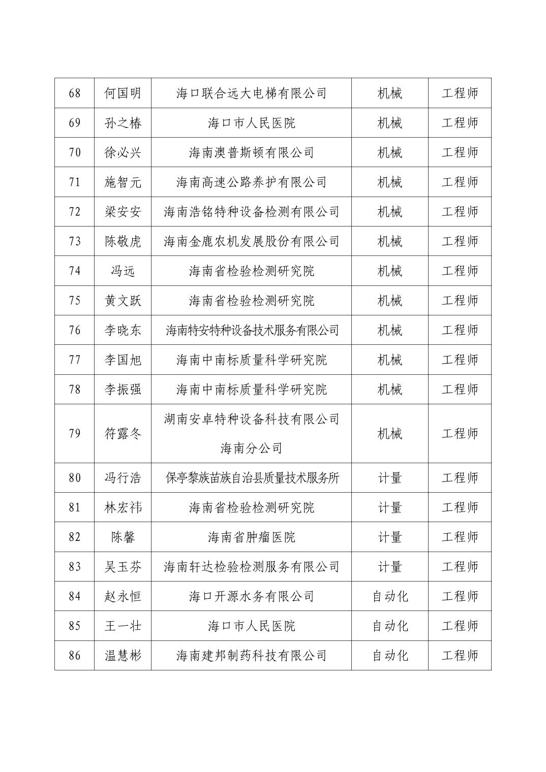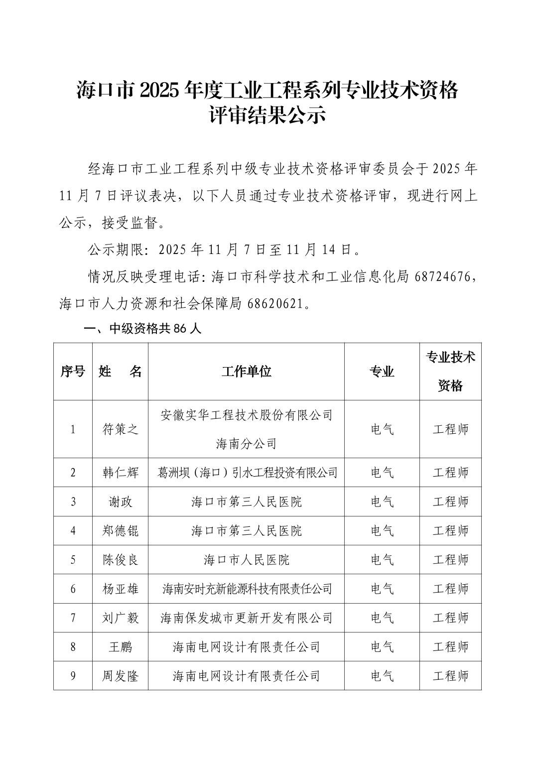 海口市2025年度工业工程系列专业技术资格评审结果公示