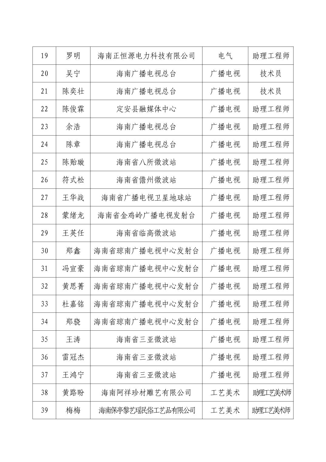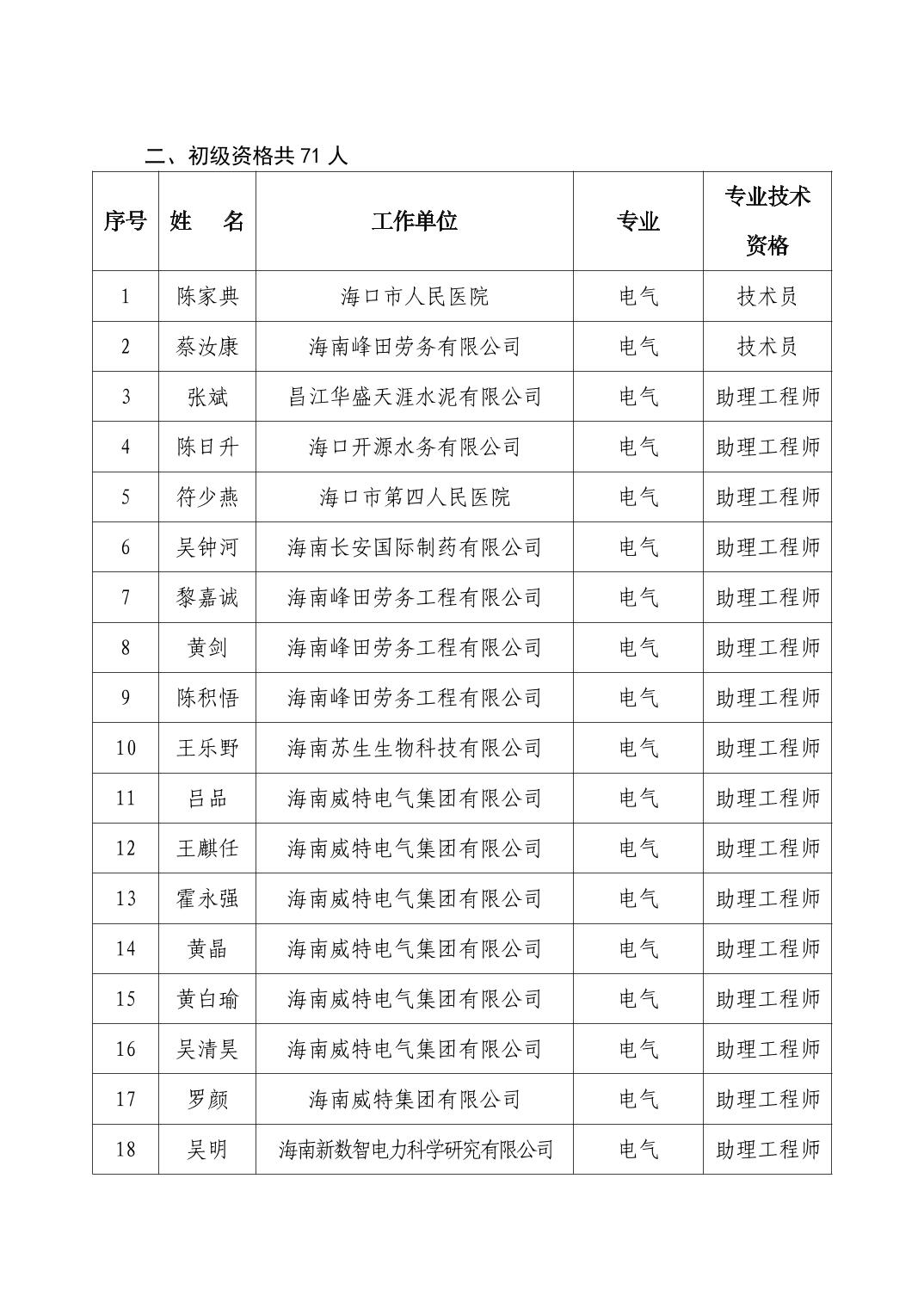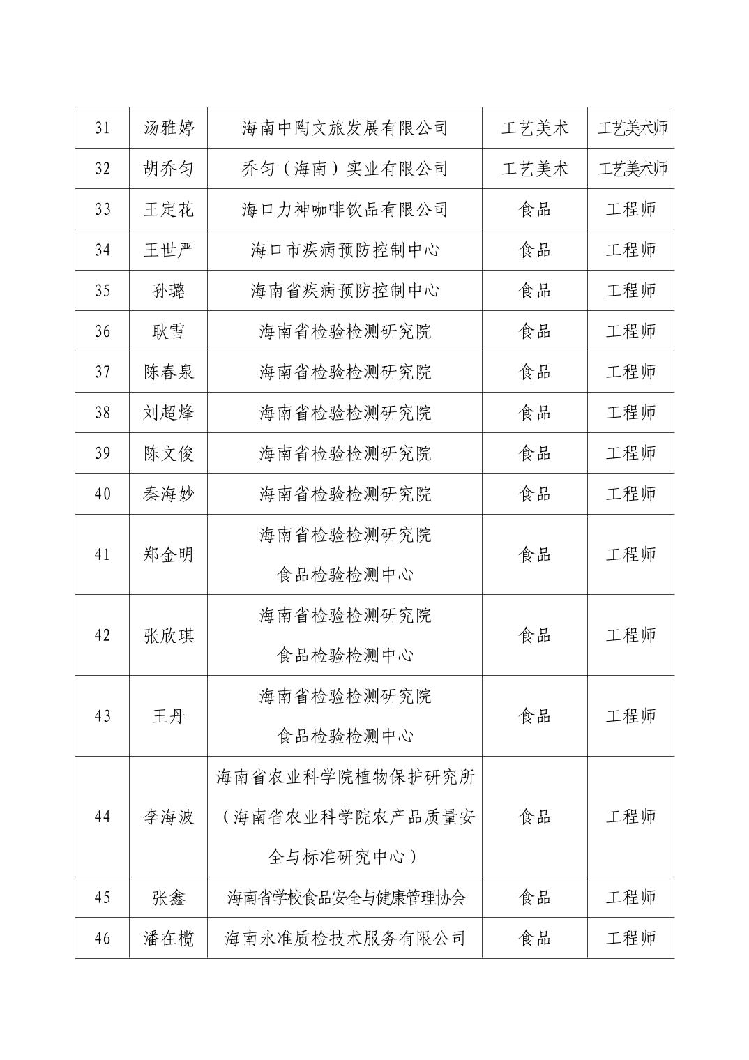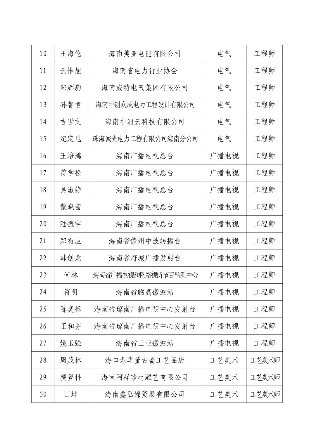 海口市2025年度工业工程系列专业技术资格评审结果公示