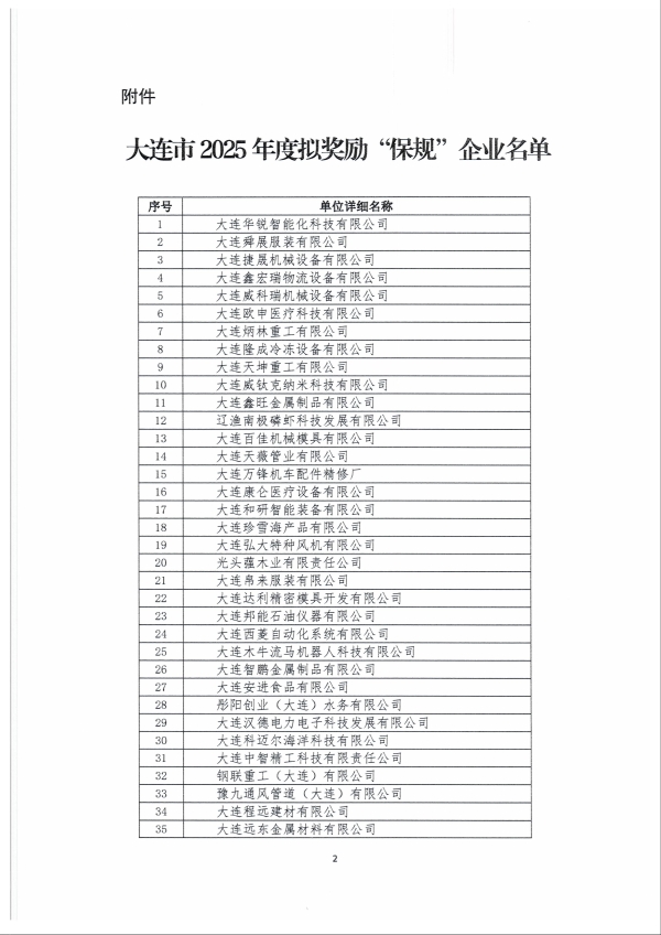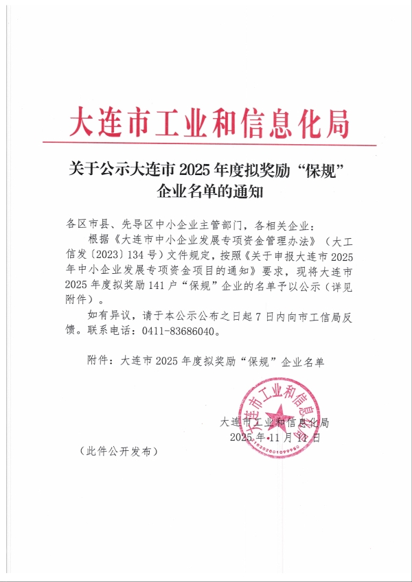 关于公示大连市2025年度拟奖励“保规”企业名单的通知