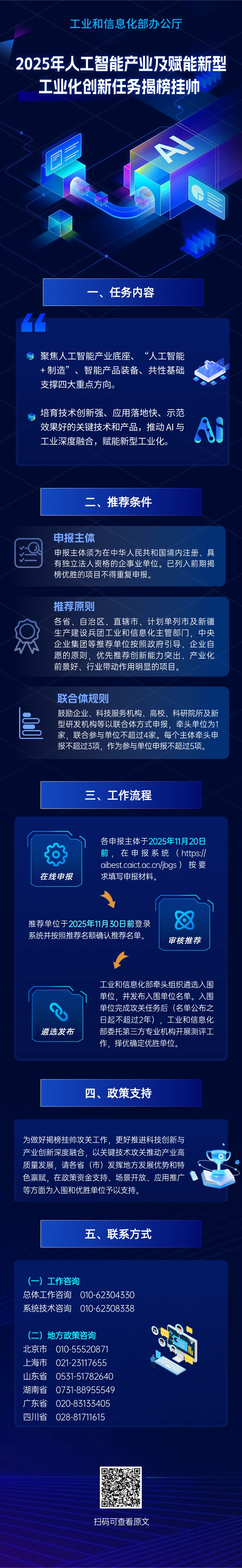 《工业和信息化部办公厅关于开展2025年人工智能产业及赋能新型工业化创新任务揭榜挂帅工作的通知》图解