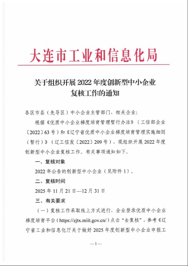 关于组织开展2022年度创新型中小企业复核工作的通知