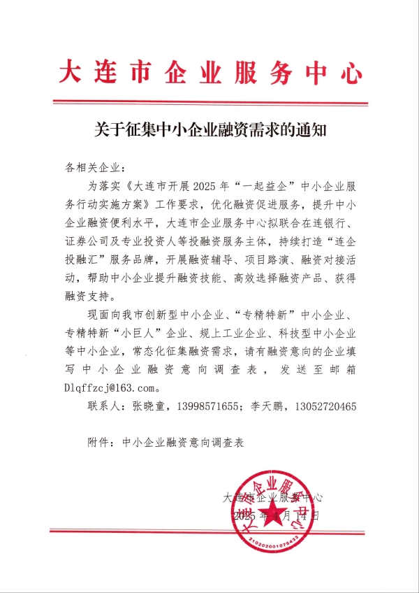 关于征集中小企业融资需求的通知