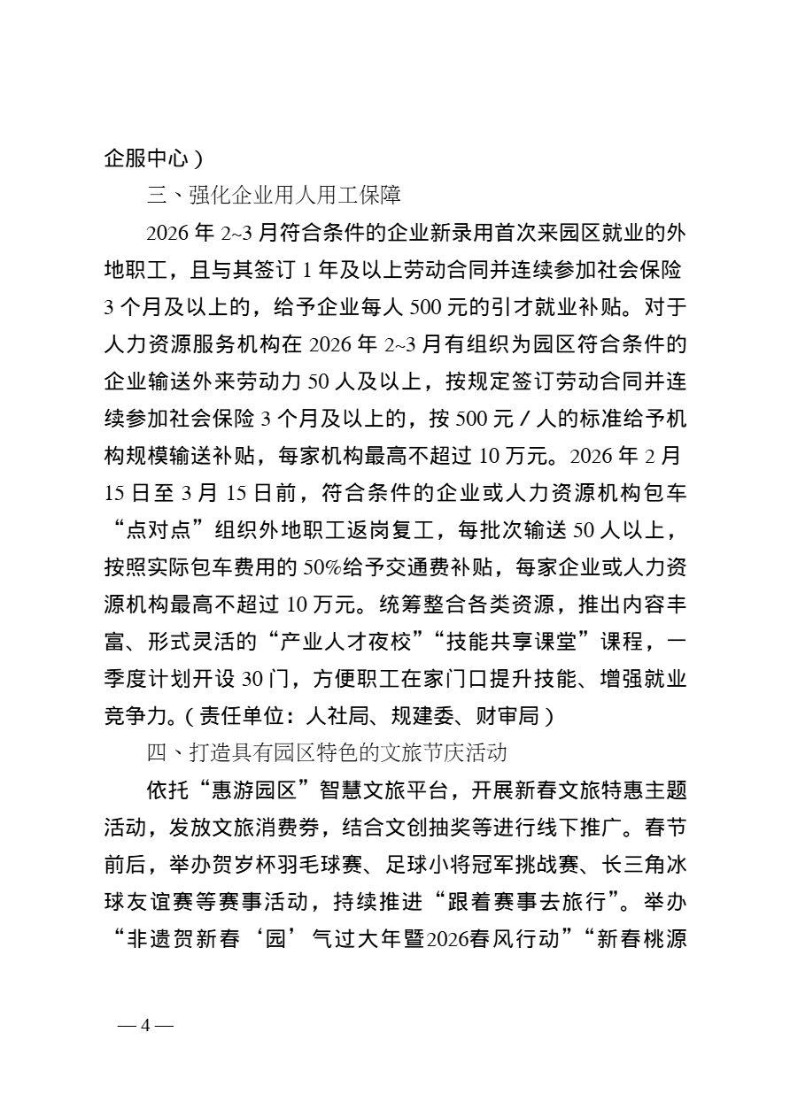 园区党政办公室关于印发《苏州工业园区2026年春节期间助企惠民若干措施》的通知