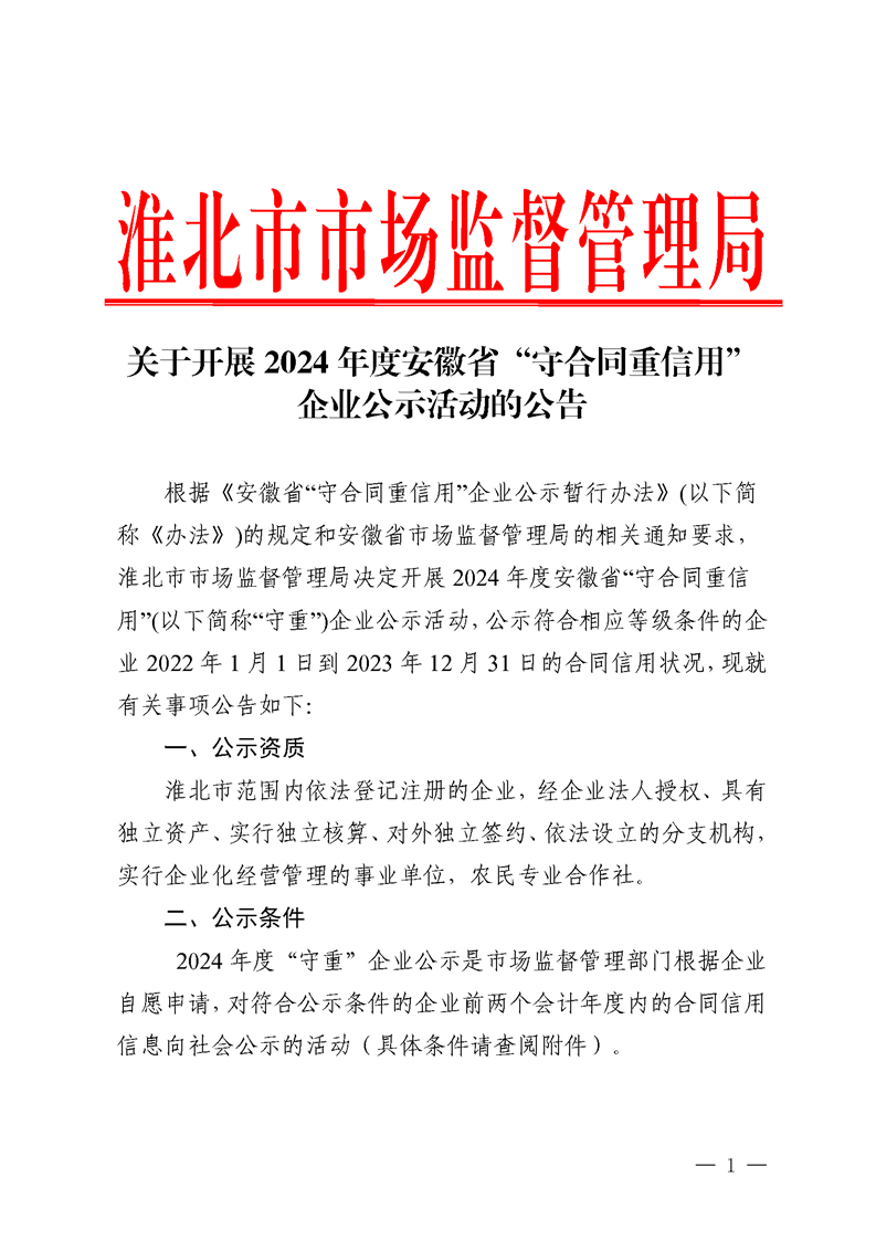 关于开展2024年度安徽省“守合同重信用”企业公示活动的公告