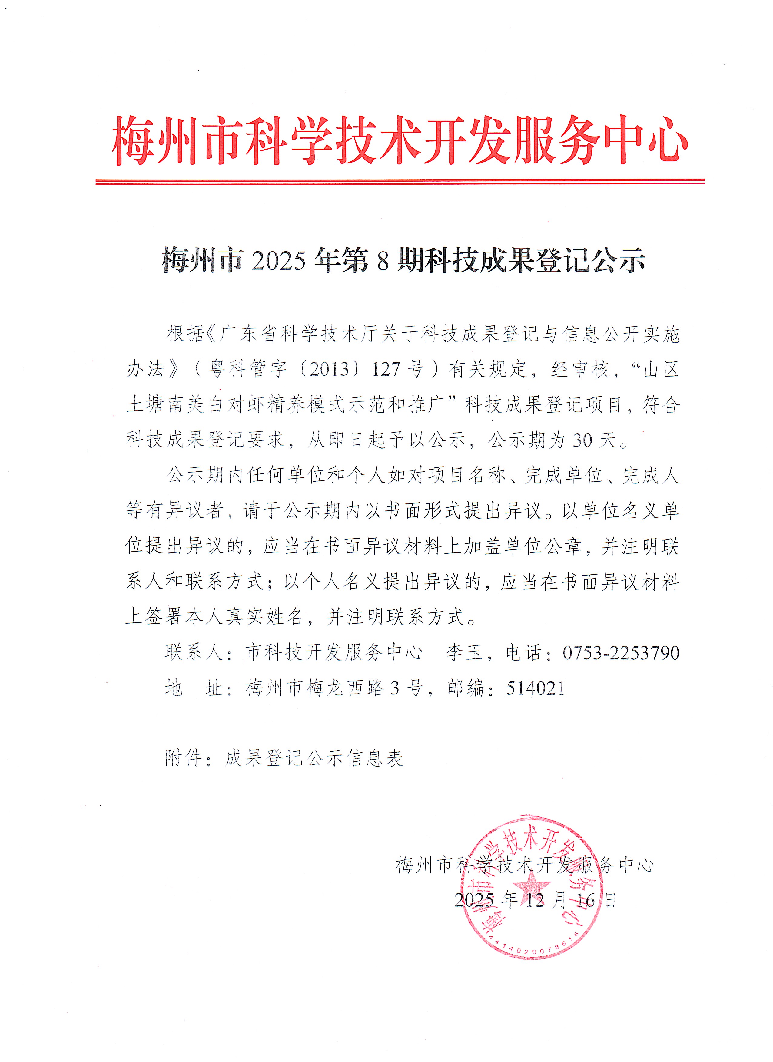 梅州市2025年第8期科技成果登记公示