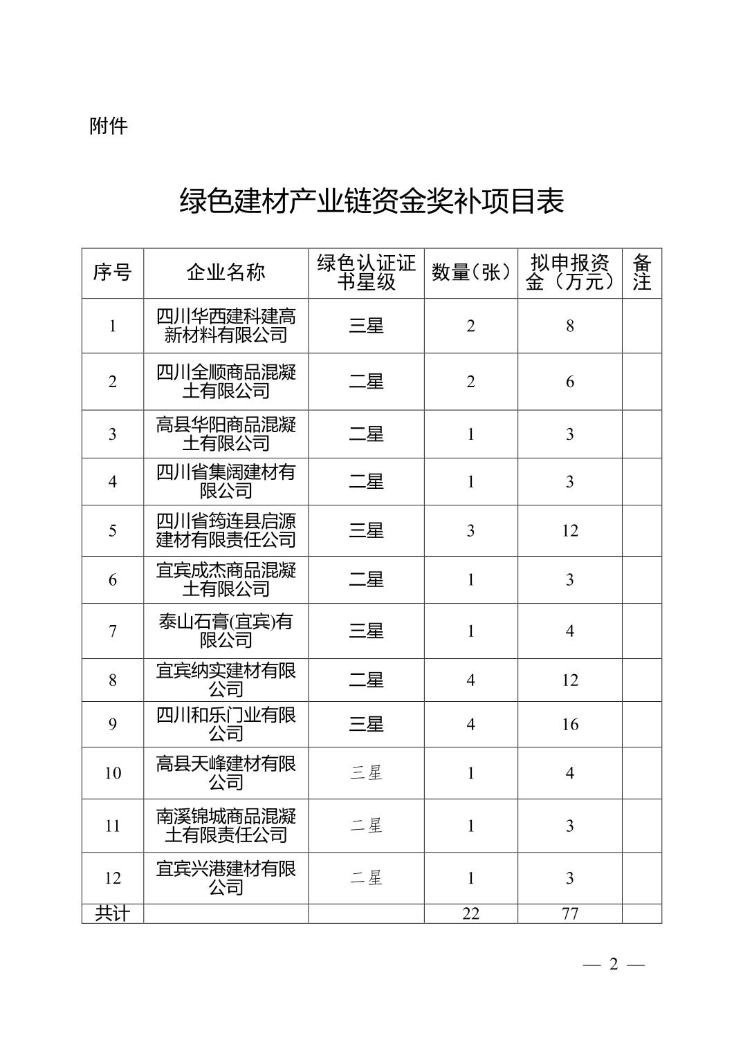 宜宾市经济和信息化局宜宾市住房和城乡建设局关于绿色建材产业链资金奖补项目的公示