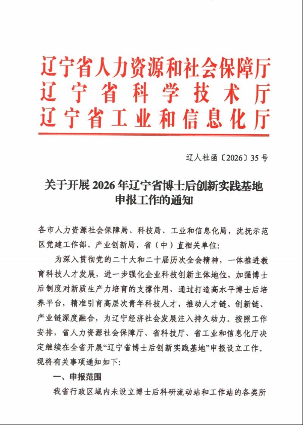 关于转发《关于开展2026年辽宁省博士后创新实践基地申报工作的通知》的通知