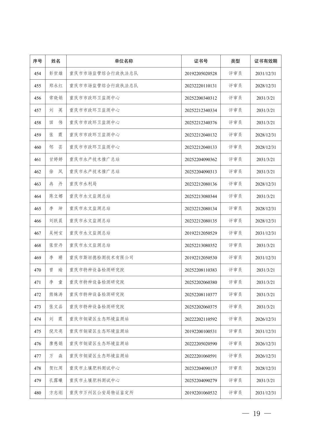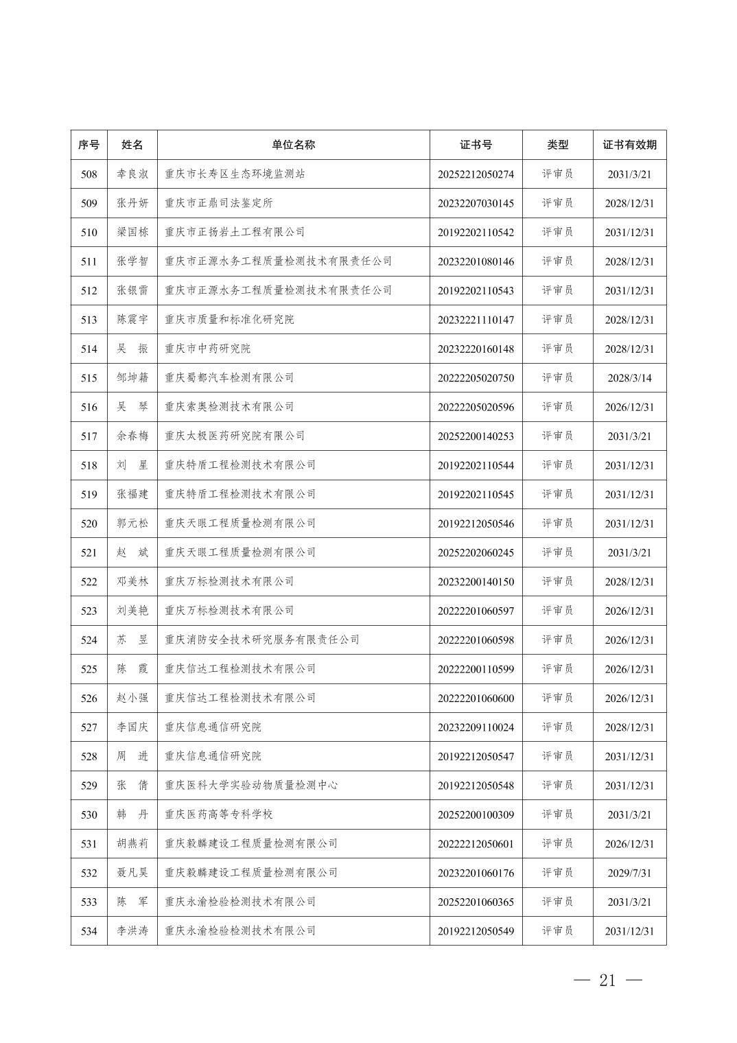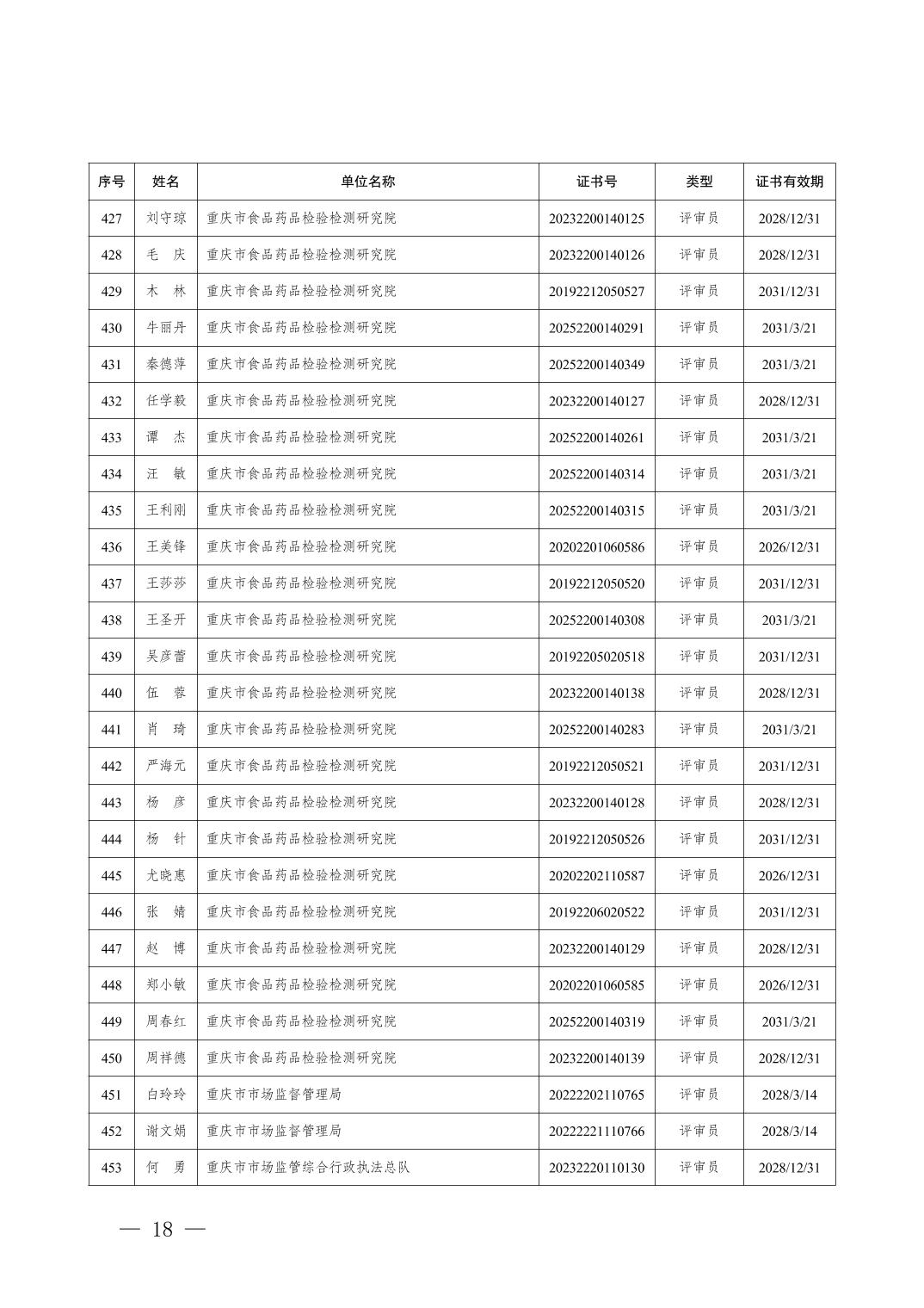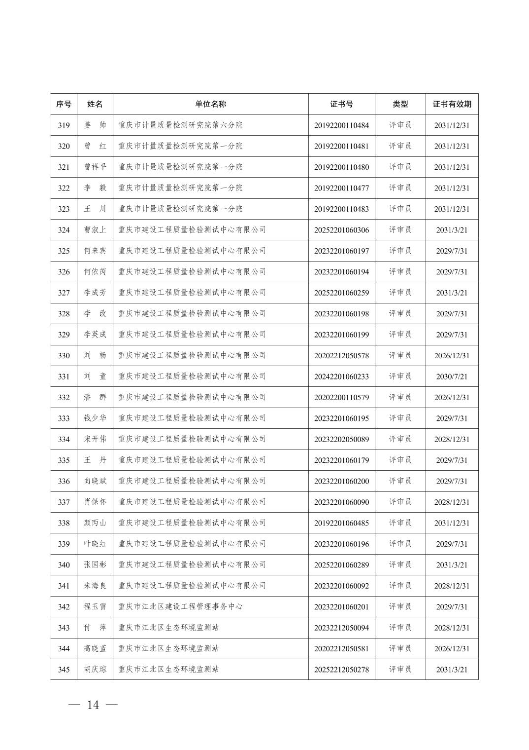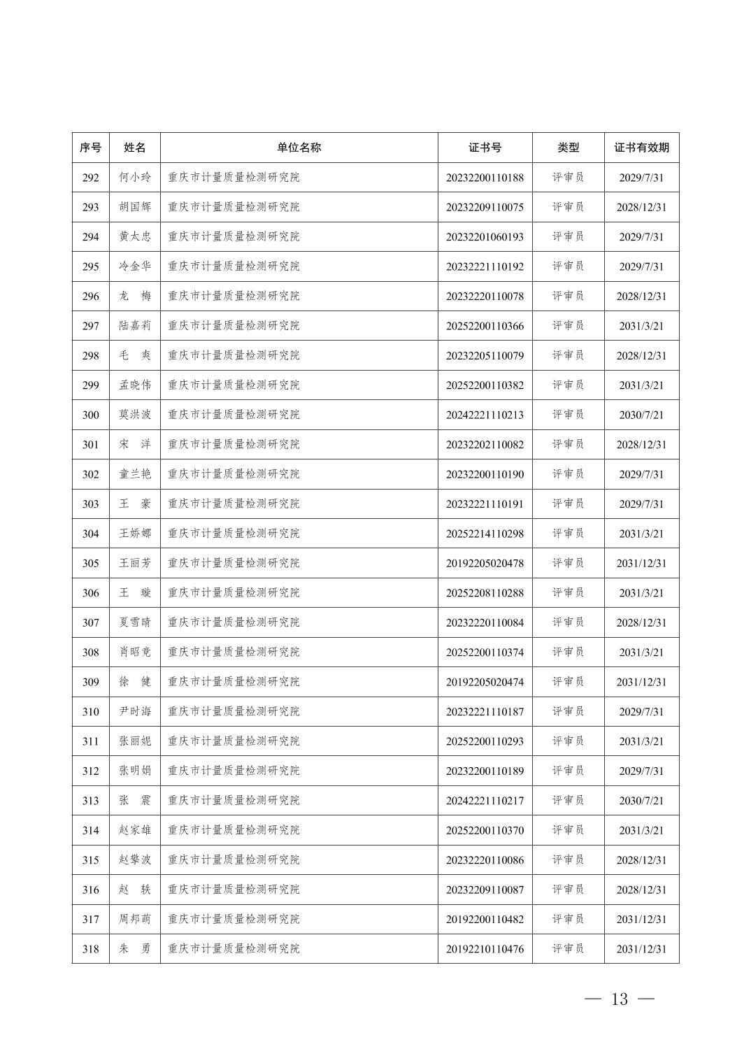 重庆市市场监督管理局关于公布2026年度重庆市检验检测机构资质认定评审员名单的公告
