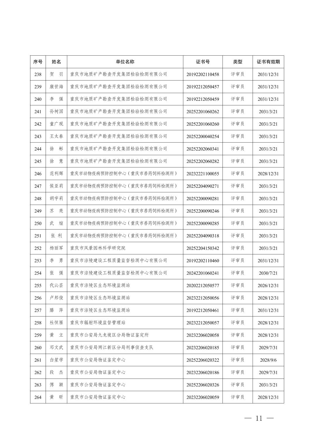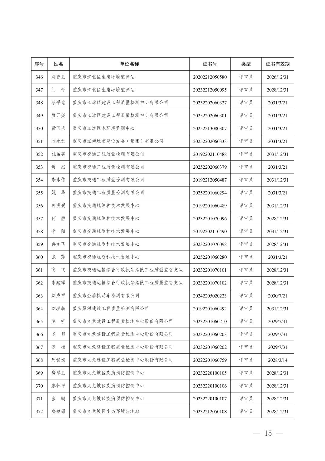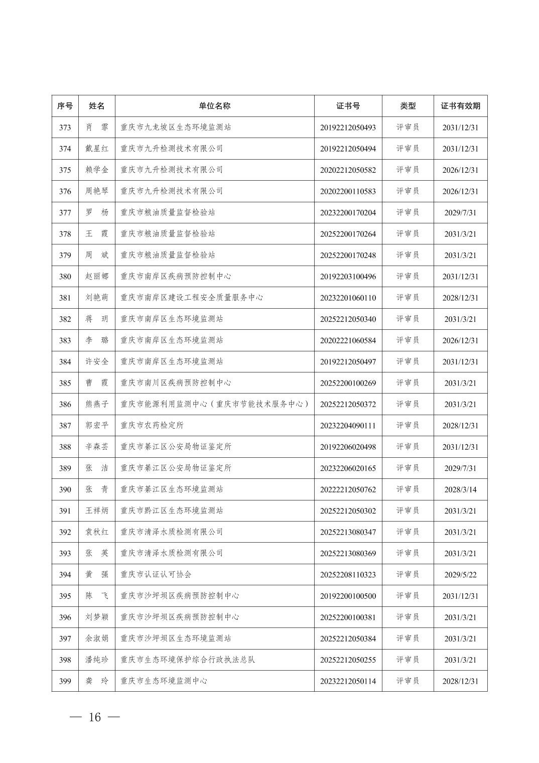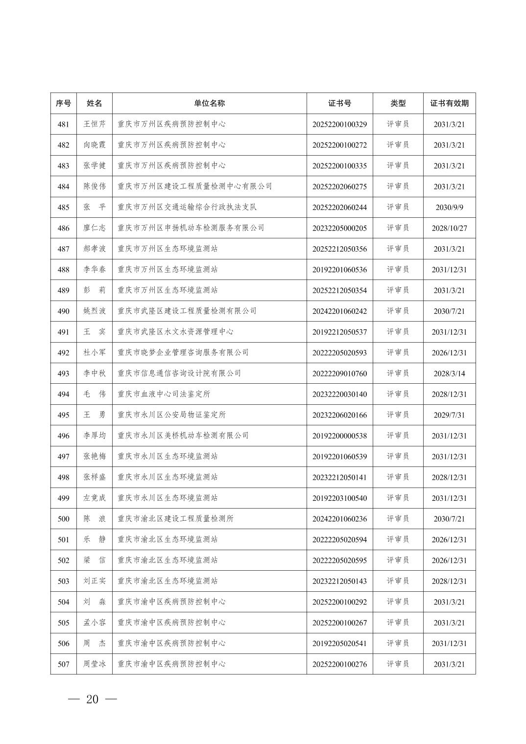 重庆市市场监督管理局关于公布2026年度重庆市检验检测机构资质认定评审员名单的公告