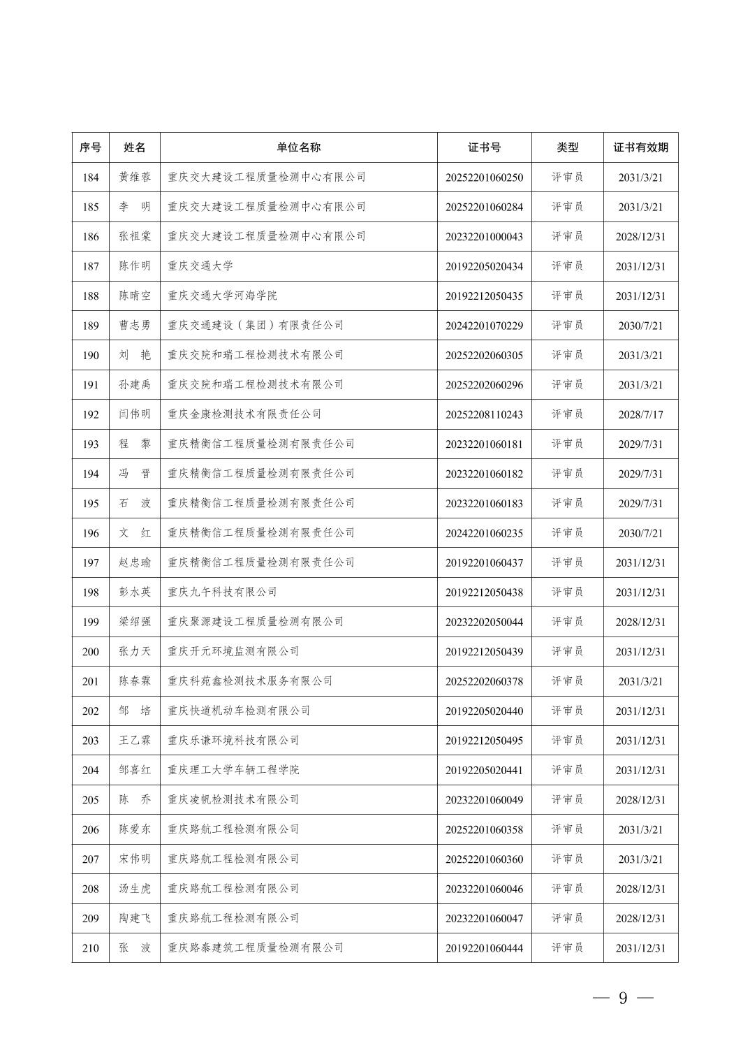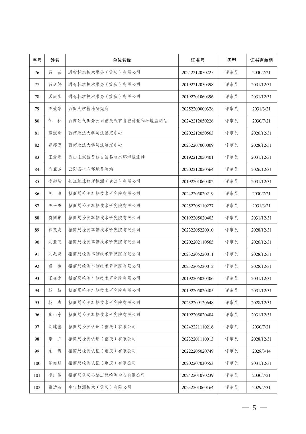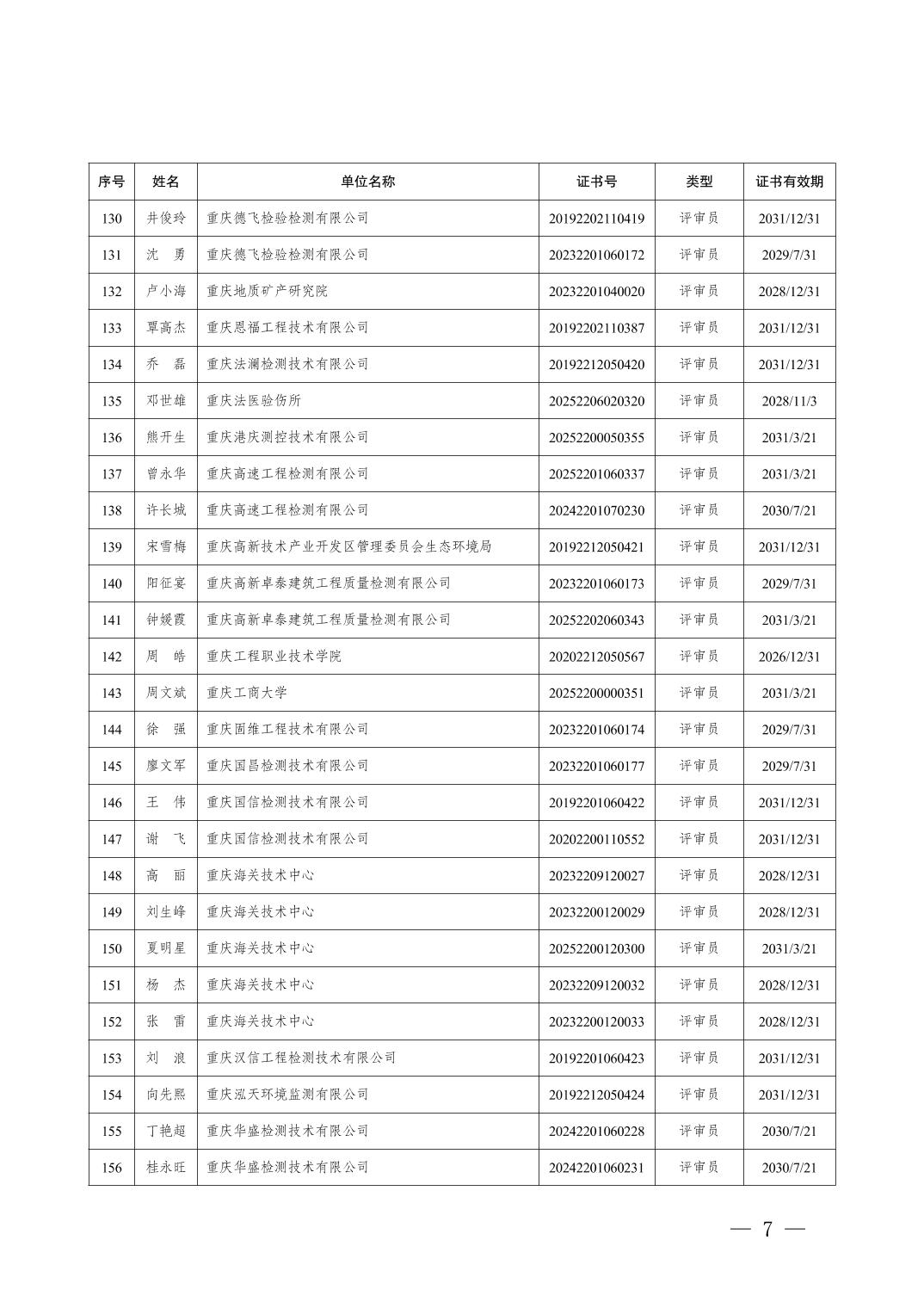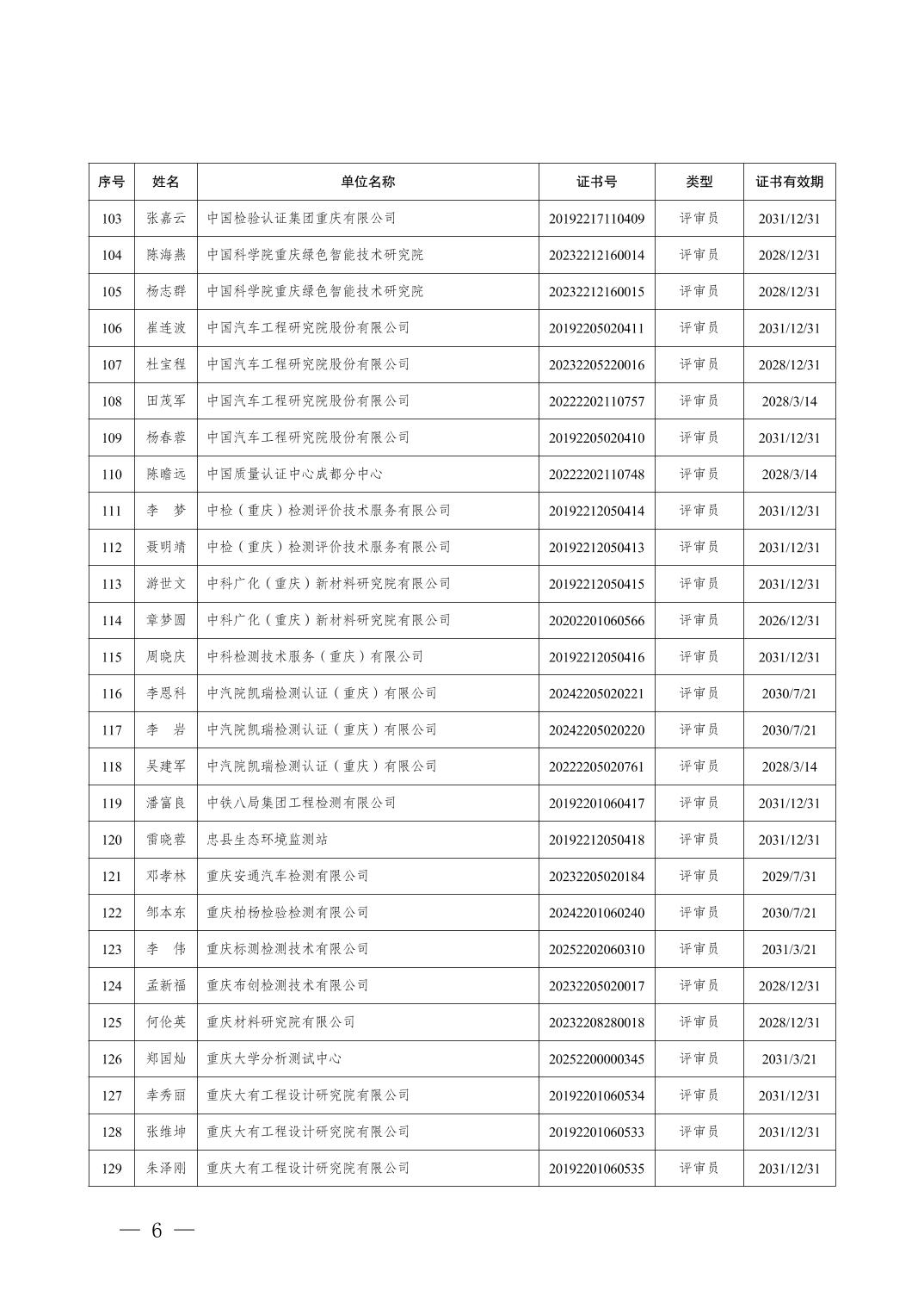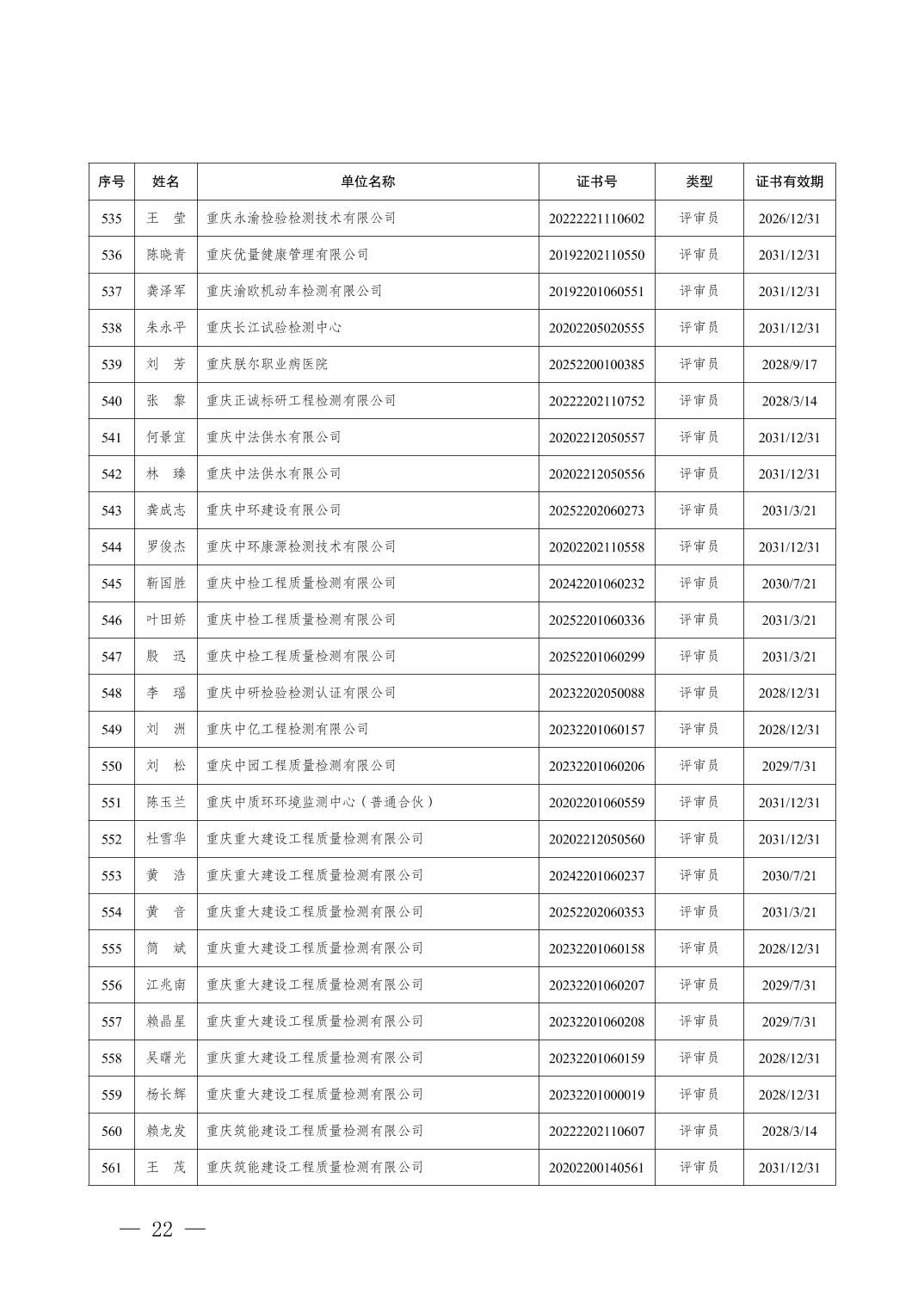 重庆市市场监督管理局关于公布2026年度重庆市检验检测机构资质认定评审员名单的公告