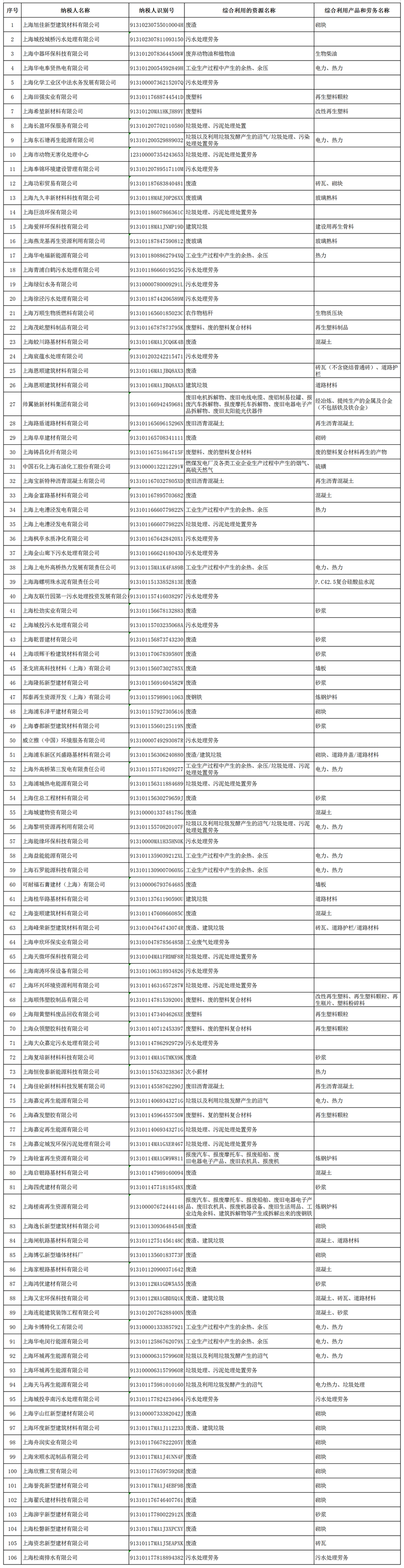 根据《关于完善资源综合利用增值税政策的公告》(财政部税务总局2021年第40号)的规定,现将本市2025年享受资源综合利用产品和劳务增值税优惠政策的纳税人相关信息公示。如有不同意见,可向国家税务总局上海市税务局(货物和劳务税处)反映。