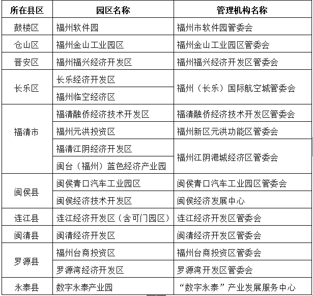16家工业园区对应的14个管委会(服务中心),分别为: