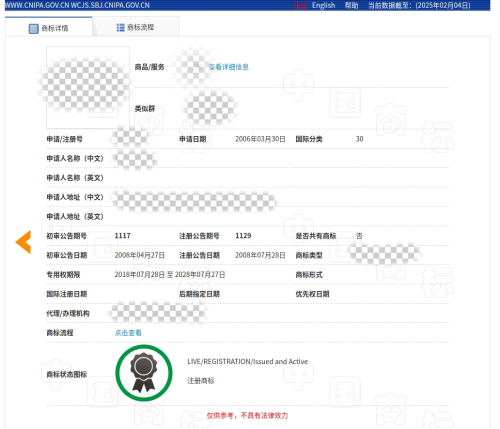 | 序号 | 专利(商标注册)号 | 专利(商标)名称 | 专利(商标)权人 | 专利(商标)权人地址 | 所属国家、地区 | 授权(注册)日 | |||