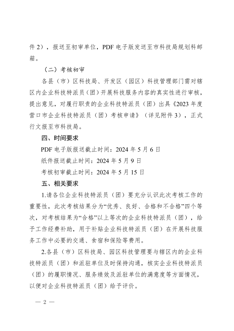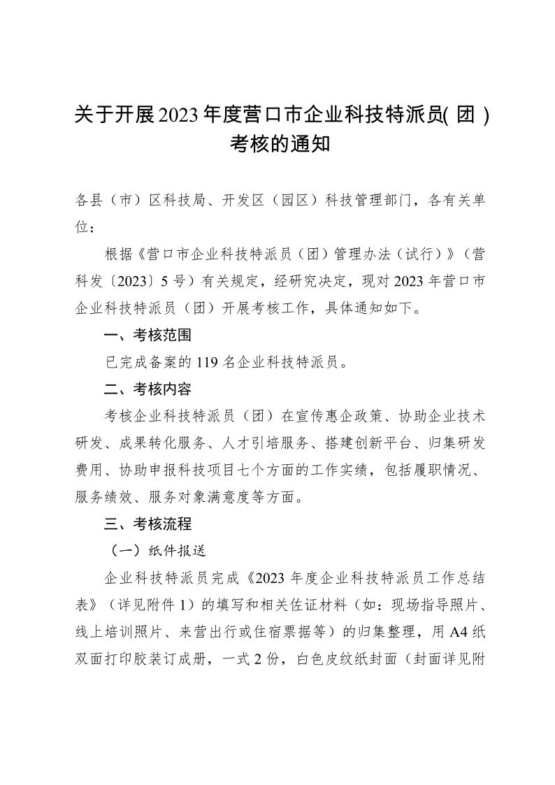 关于开展2023年度营口市企业科技特派员(团)考核的通知