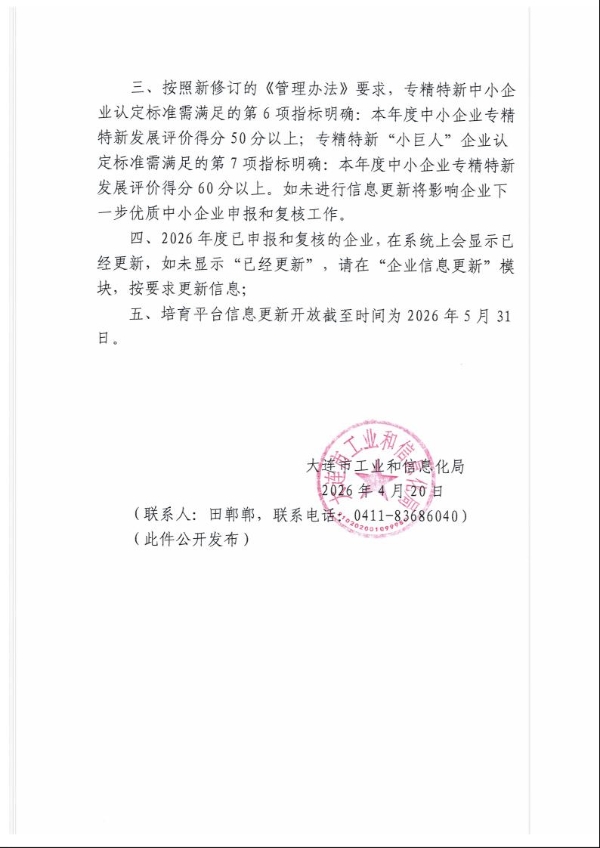 关于做好2026年度优质中小企业年度信息更新工作的通知