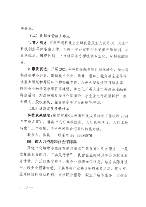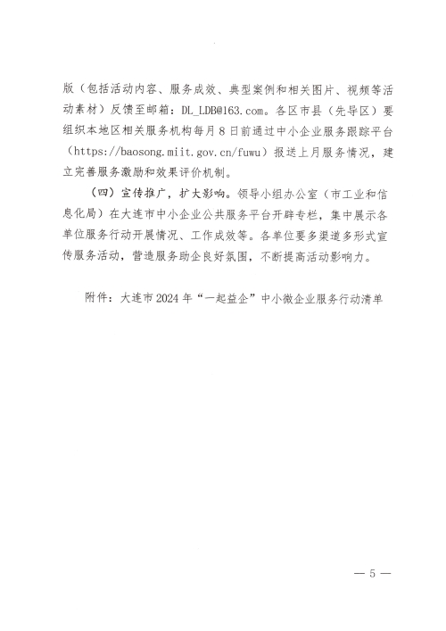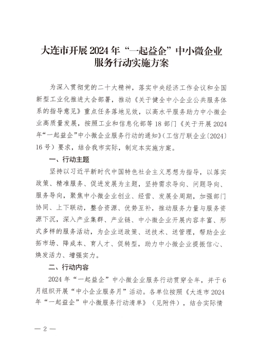 关于印发大连市开展2024年“一起益企”中小微企业服务行动实施方案的通知