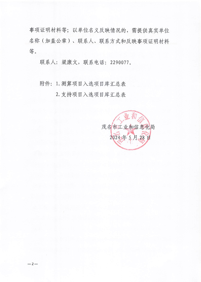 茂名市工业和信息化局关于2025年省级制造业当家重点任务保障专项企业技术改造资金拟入选项目库名单的公示