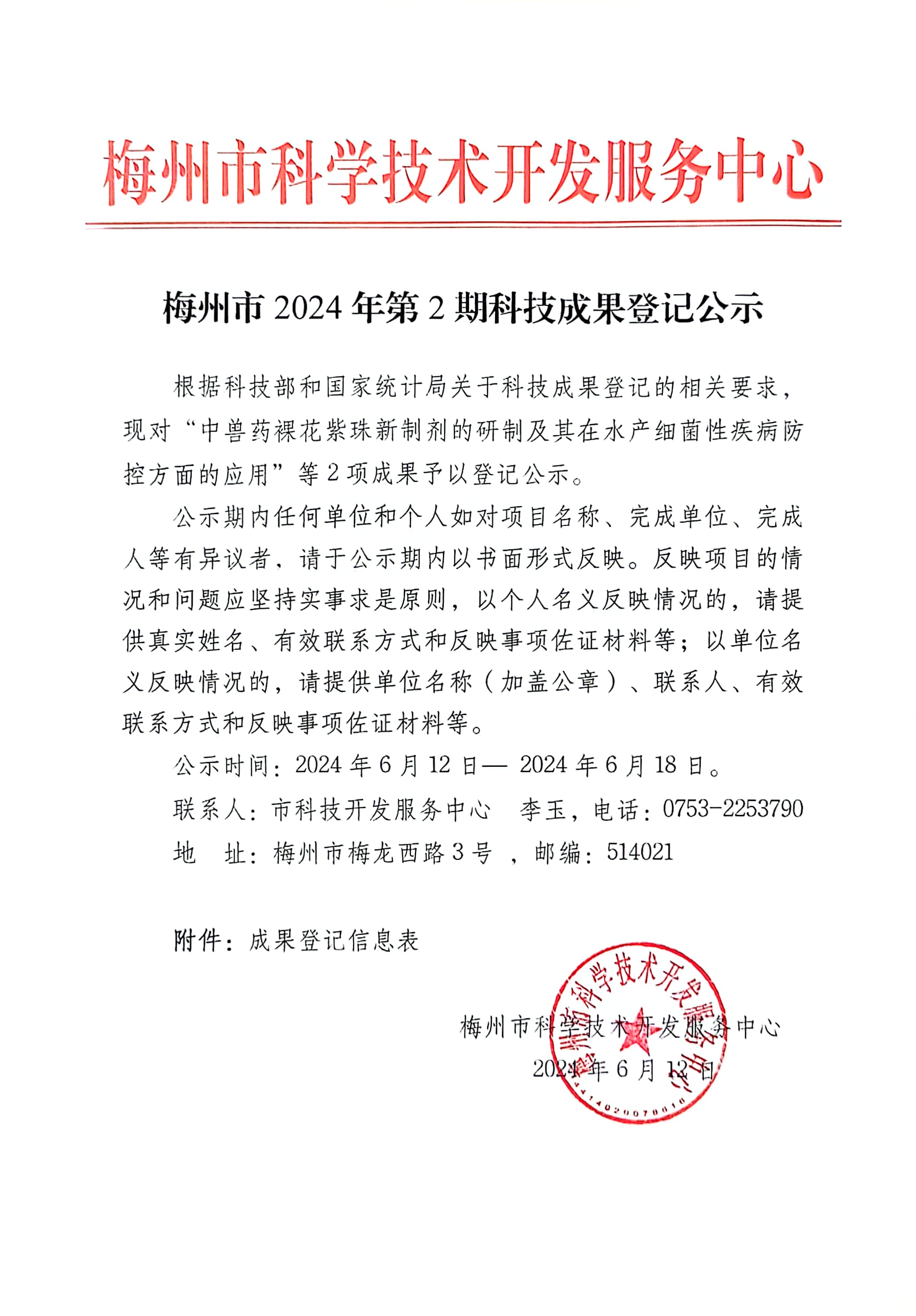 梅州市2024年第2期科技成果登记公示
