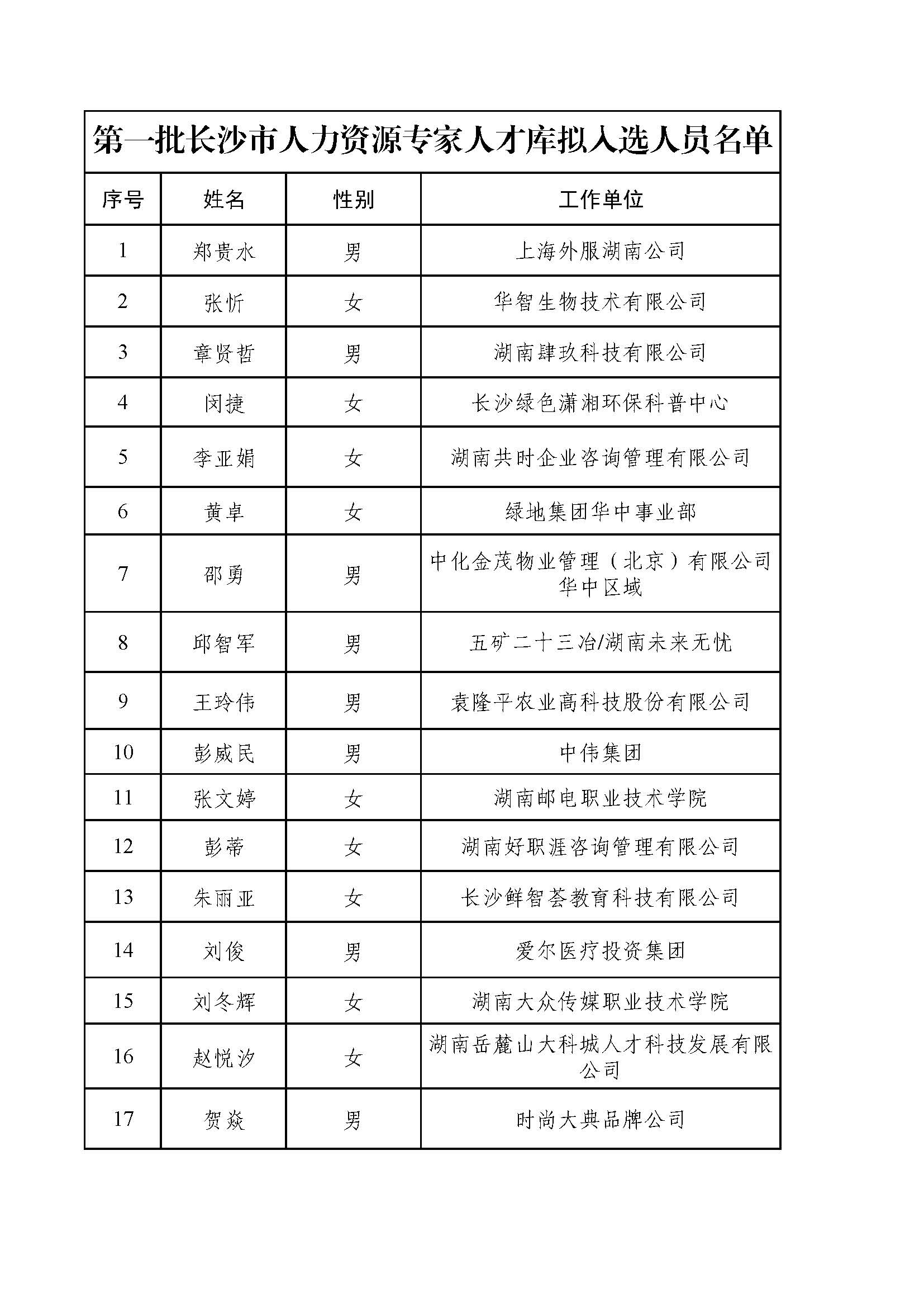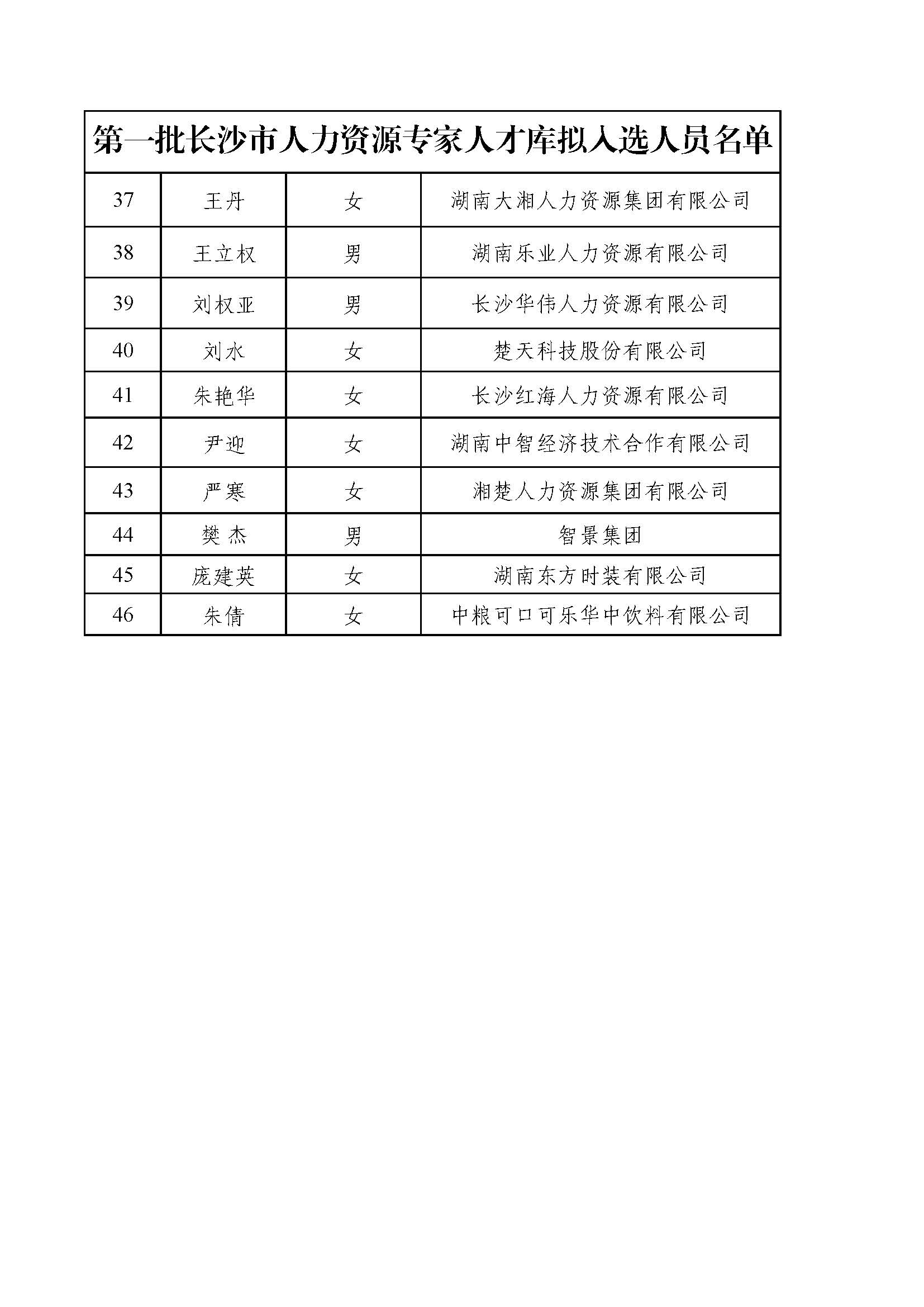根据《组建长沙市人社局人力资源专家人才库方案》要求,我局经公开征集、单位(专家)推荐和审核,拟确定郑贵水等46名同志入围第一批长沙市人社局人力资源专家人才库,现予以公示。公示时间为2024年9月13日至2024年9月20日。若有异议,请在公示期内以书面形式向长沙市人力资源和社会保障局机关纪委或长沙市人力资源公共服务中心提出。