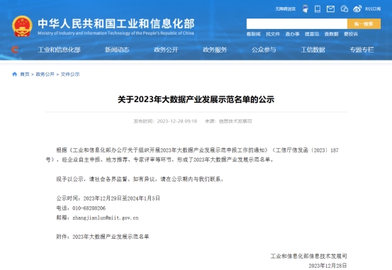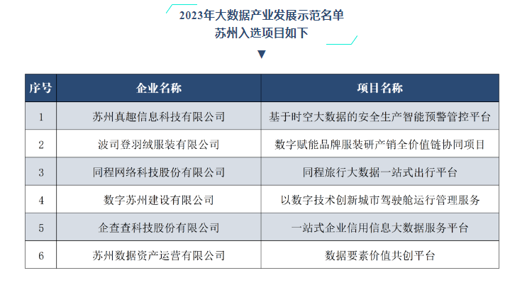 今天(12月28日),工信部公示了2023年大数据产业发展示范名单,苏州共有6个项目上榜,数量居全省第一,占全省50%。