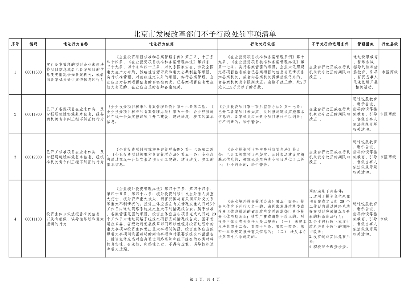 各有关单位:为进一步规范行政执法行为,助力优化本市营商环境,推进包容审慎监管,充分发挥行政处罚的教育、引导作用,我们制定了《北京市发展改革部门不予行政处罚事项清单》,现予印发,请遵照执行。