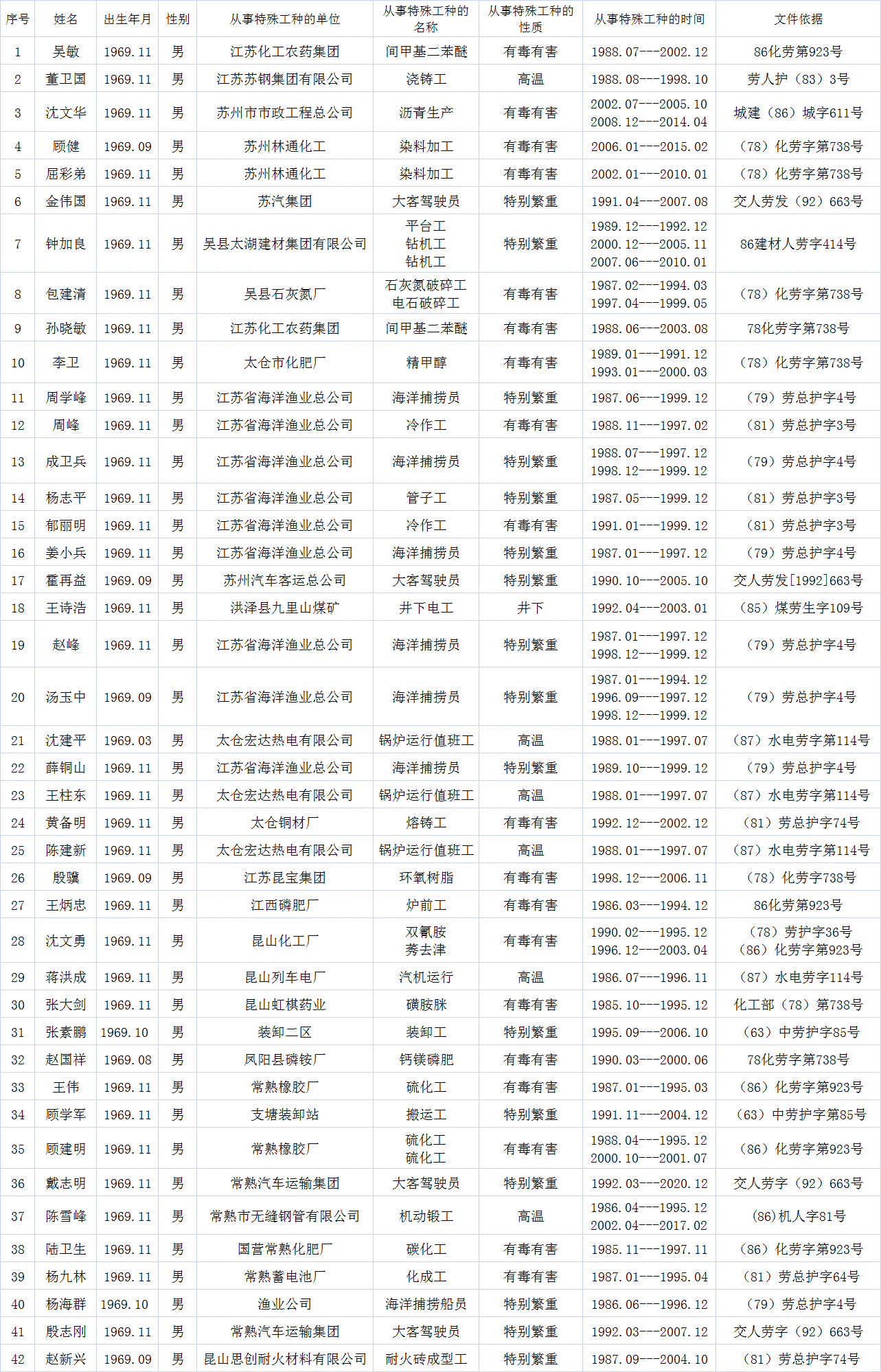 根据人社部发〔2018〕73号文件、苏人社发〔2018〕393号文件规定,现将2024年11月我市特殊工种提前退休人员基本情况予以公示,公示时间5个工作日(2024年11月29日至2024年12月6日)。如有异议,请在公示期内向12333反映情况。